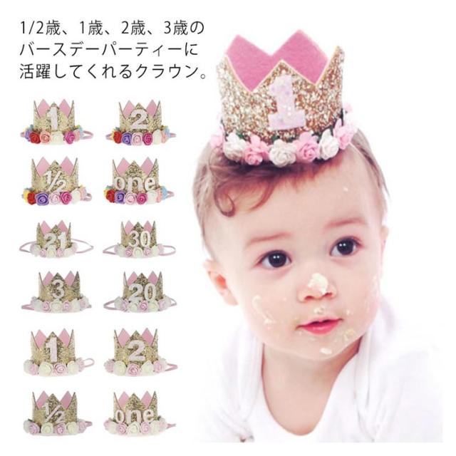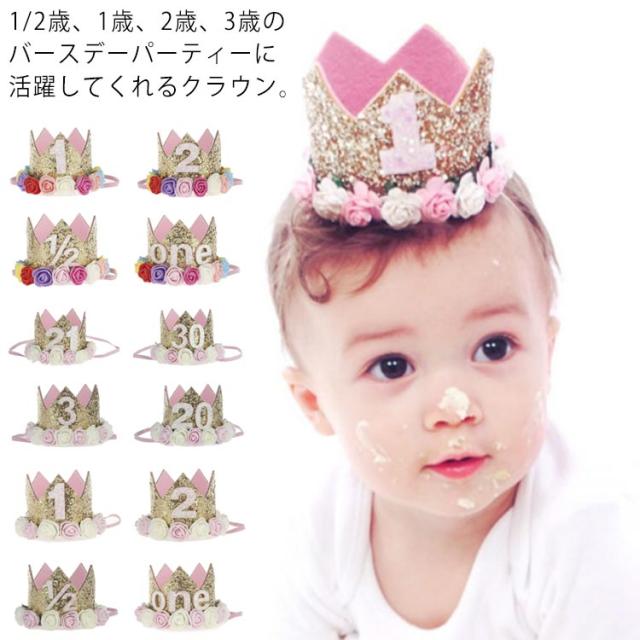 | 1/2歳、1歳、2歳、3歳のバースデーパーティーに活躍してくれるクラウン。 キラキラ輝くスパンコールとお花がお姫様や王子様を可愛くて映えます。 こんなクラウンをかぶってぐっとにぎやかなパーティーのイメージになります。 お花付き王冠モチーフパーティーハット、記念撮影の衣装にぴったり! お祝いやイベント事、誕生日パーティー、記念撮影などで大活躍! | |