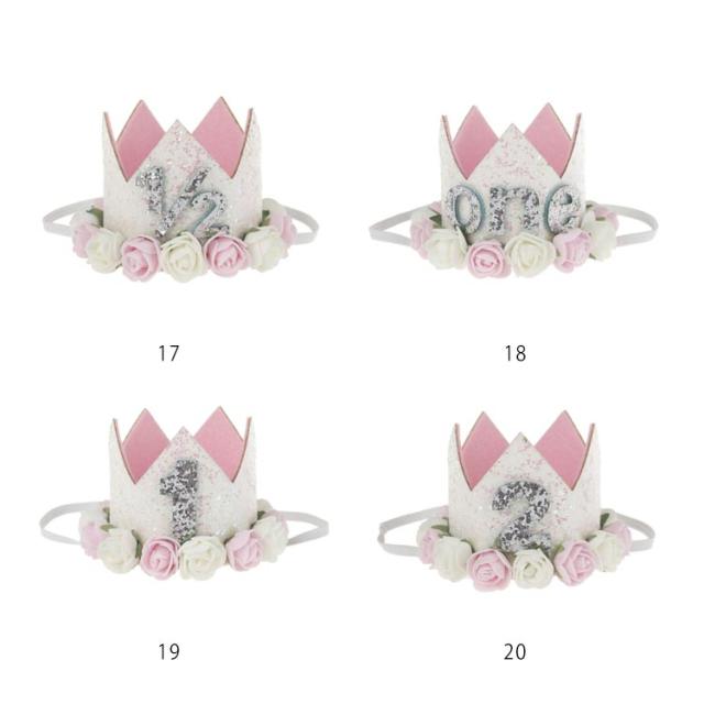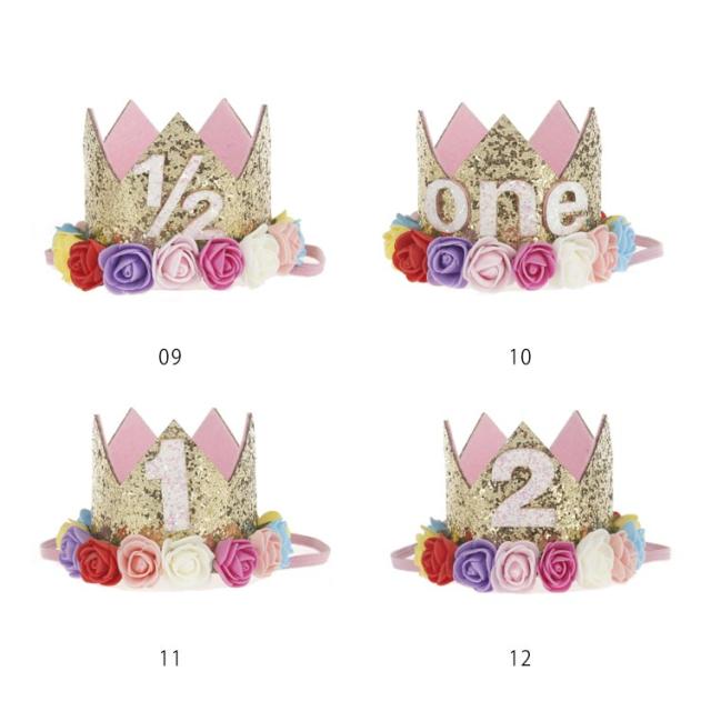 全4color×5タイプ ヘアアクセサリー パーティーハット ベビークラウン 誕生日パーティー 帽子 ハーフバースデー 1才 2才 3才 髪飾り かんむり 王冠 お祝いグッズ 花 赤ちゃん キッズ 子供