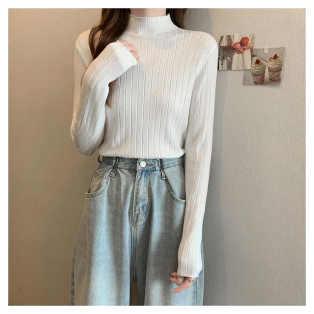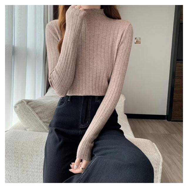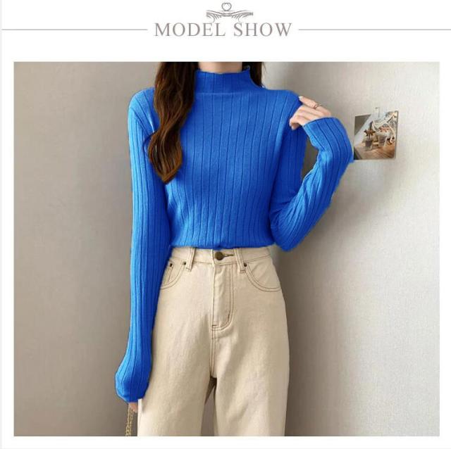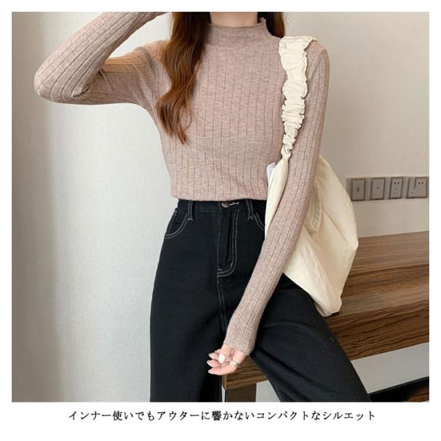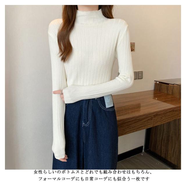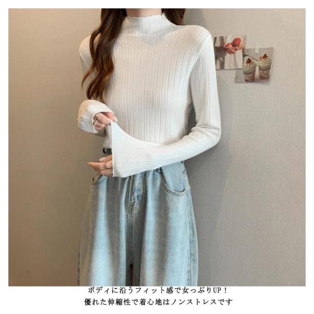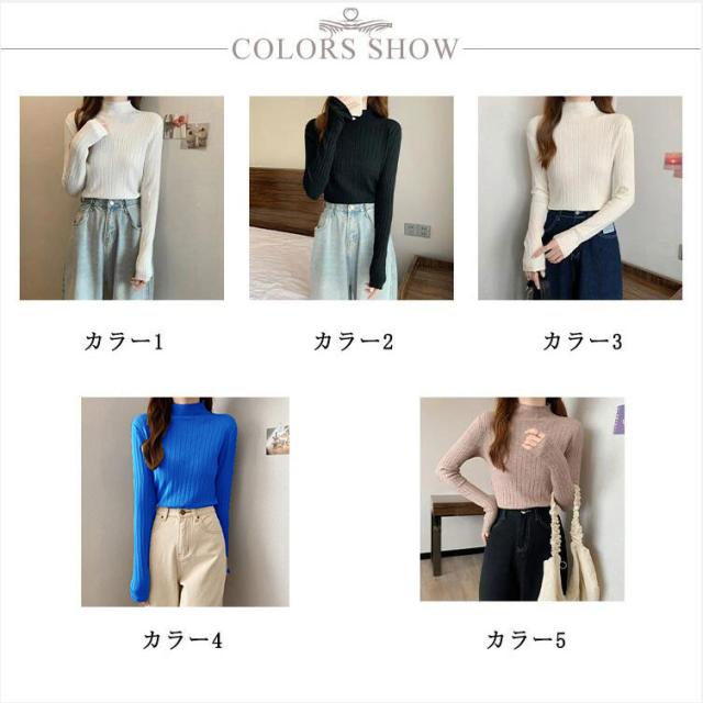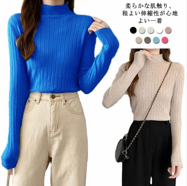 送料無料 ハイネックニットセーター 長袖 レディース リブハイネック タートルネック トップス セーター リブ ハイネック インナー 伸縮性 暖か シンプル エレガント 春 秋 冬 9色 S M L XL 2XL