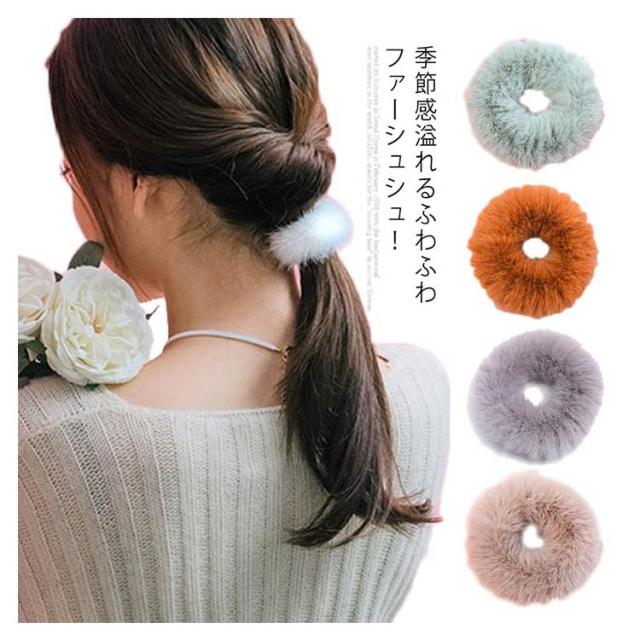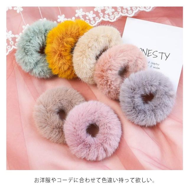 ファーシュシュ ふわふわ ドーナツ型 フェイクファー シュシュ ヘアゴム 髪留め 送料無料 可愛い レディース 子供 リングゴム ポイント消化 ヘアアクセサリー 秋冬
