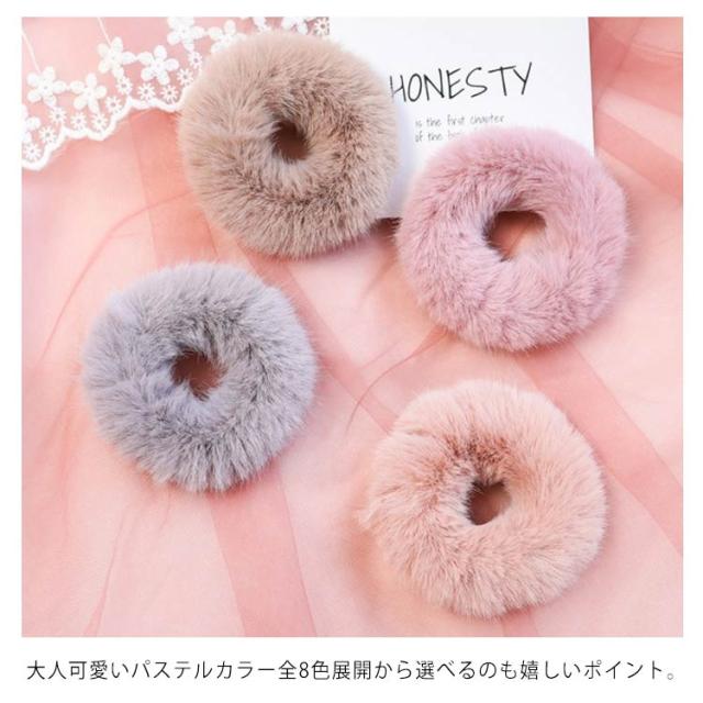| 季節感溢れるふわふわファーシュシュ! 大人可愛いパステルカラー全8色展開から選べるのも嬉しいポイント。 お洋服やコーデに合わせて色違い持って欲しい。 子供から大人まで幅広い年代に大人気。 普段使いはもちろん、お出かけでも使いやすい。 | |
