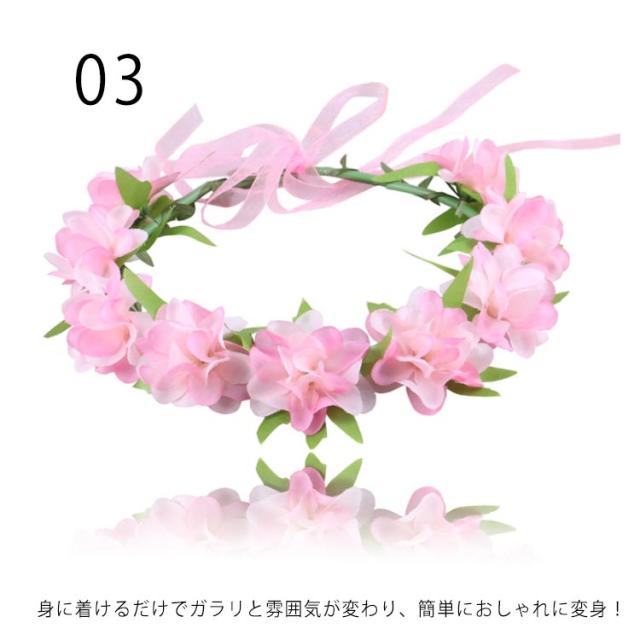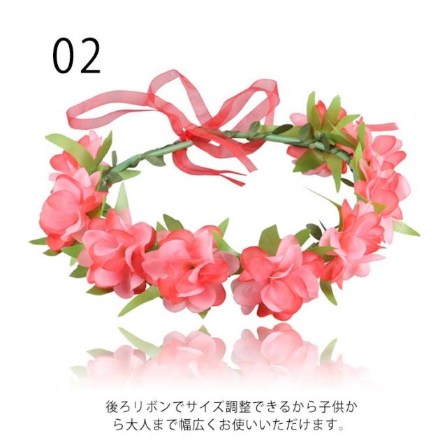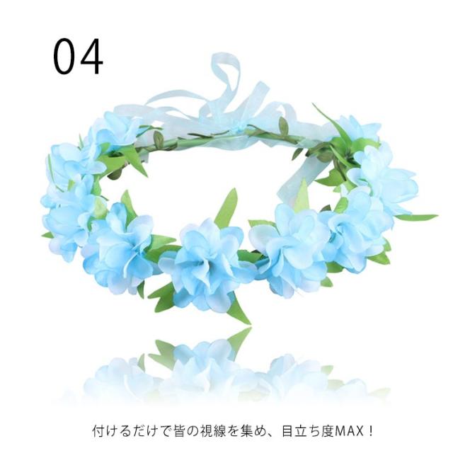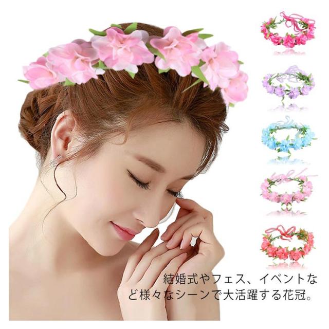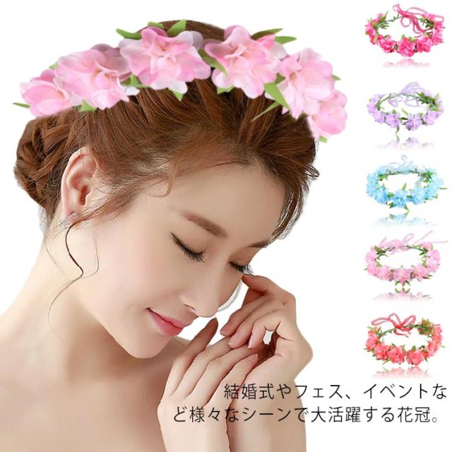 花かんむり フラワークラウン 花冠 ヘアアクセサリー 送料無料 結婚式 夏フェス イベント リボン パーティー ヘアバンド 女の子 レディース 仮装 髪飾り