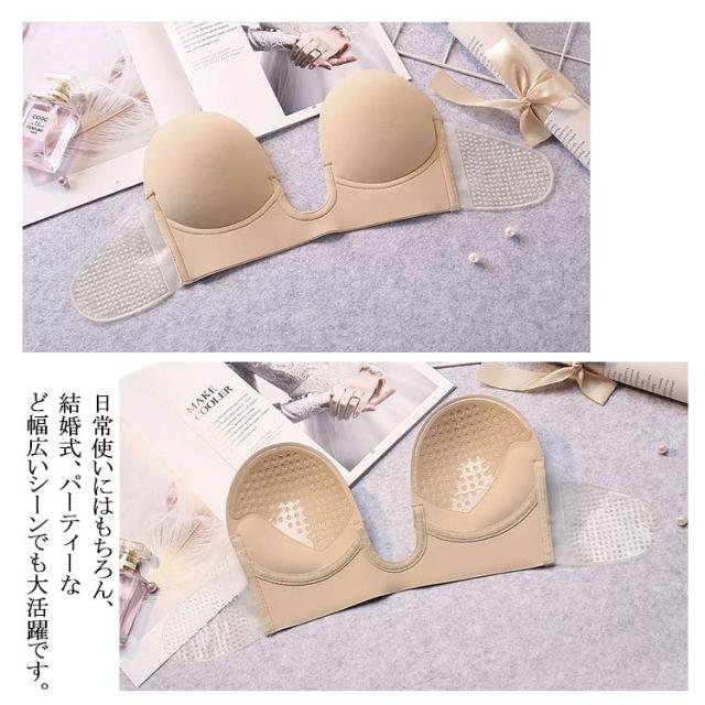 ヌードブラ ブラジャー シリコンブラ U型 下着 ストラップレス インナー 谷間メイク 盛れる ドレス 結婚式 ブライダル 二次会 演奏会 送料無料