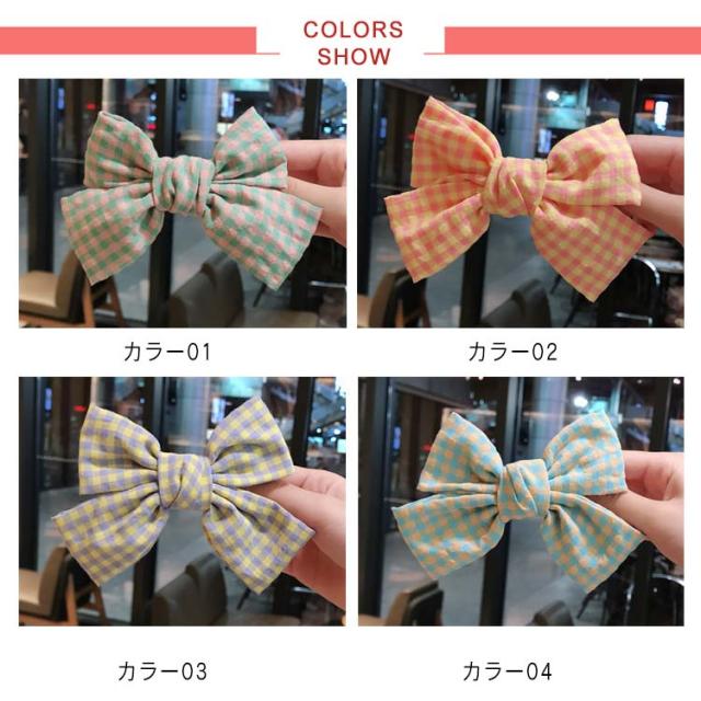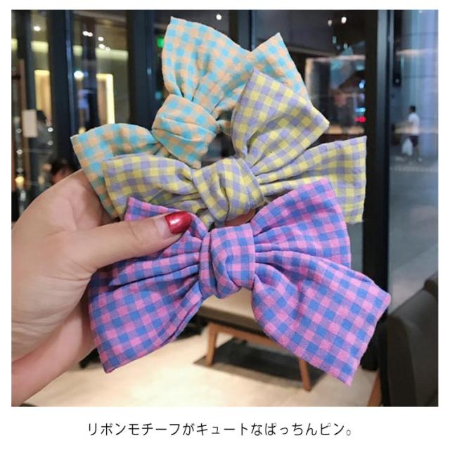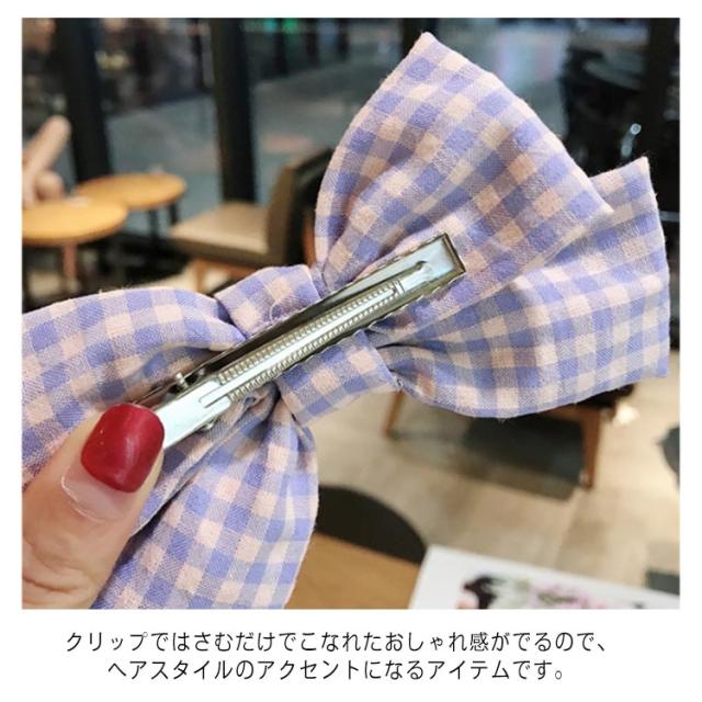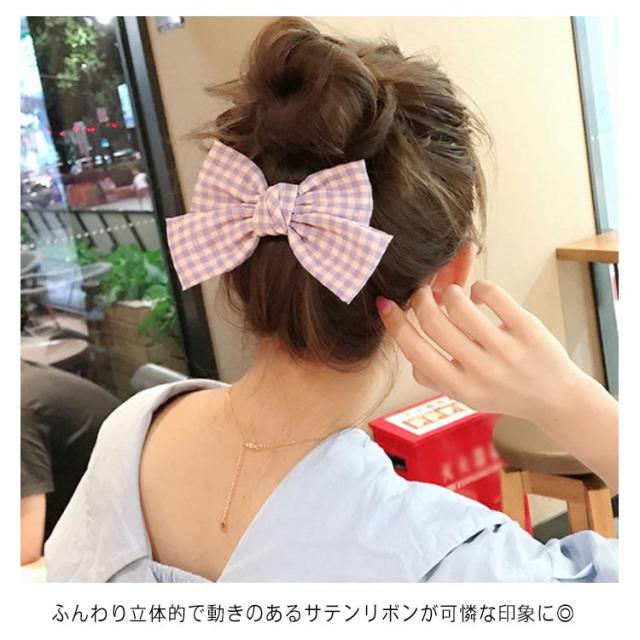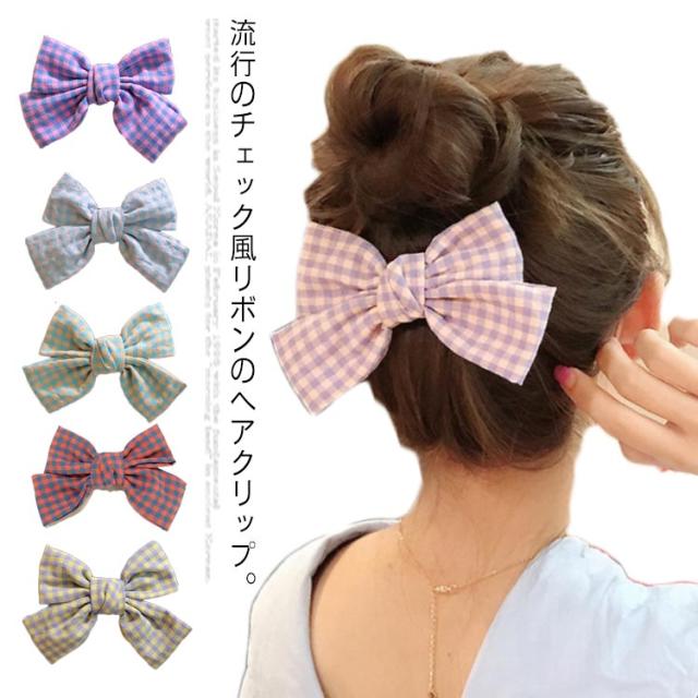 チェック柄 リボン ヘアクリップ ヘアアクセ ヘアアクセサリー ビックリボン 髪飾り ヘアピン クリップ カジュアル 可愛い 小物 ファッション雑貨 ヘアアクセサリー 髪留め レディース デイリー 女性 シンプル 送料無料