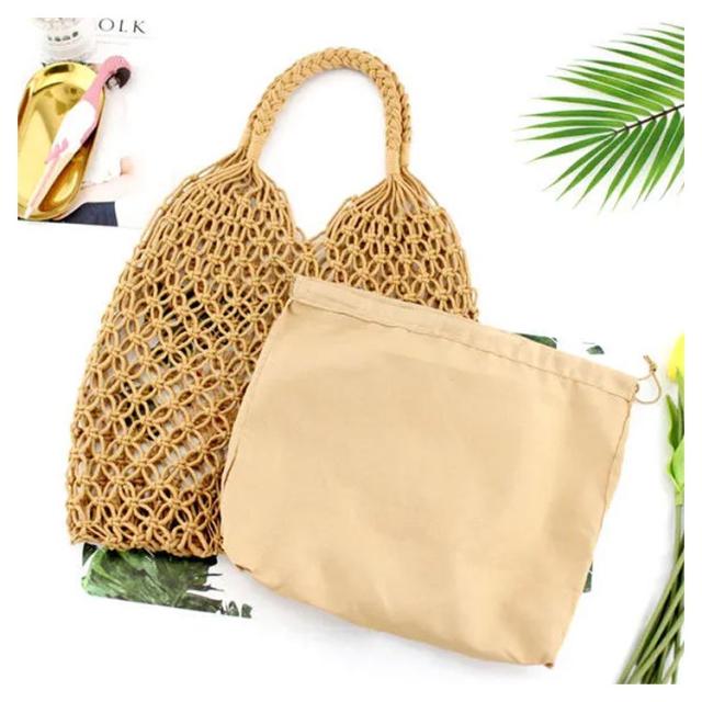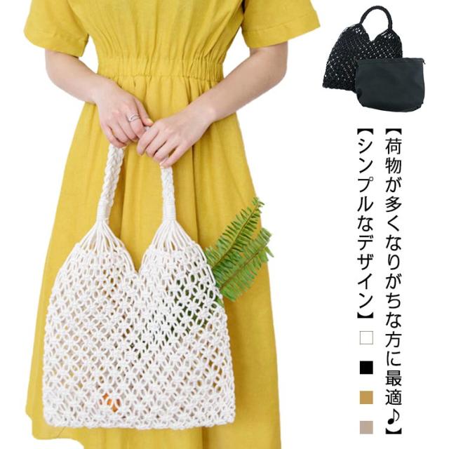 かごバッグ 手編み メッシュ トートバッグ 編みバッグ 大容量 レディース エコバッグ トート 夏バッグ ストローバッグ 手持ちバッグ カゴバッグ 手提げ おしゃれ 大人 きれいめ 内袋 巾着 ネットバッグ 手提げ 春 夏 海 リゾート 黒 送料無料