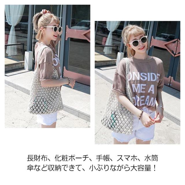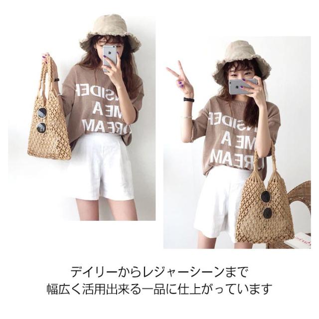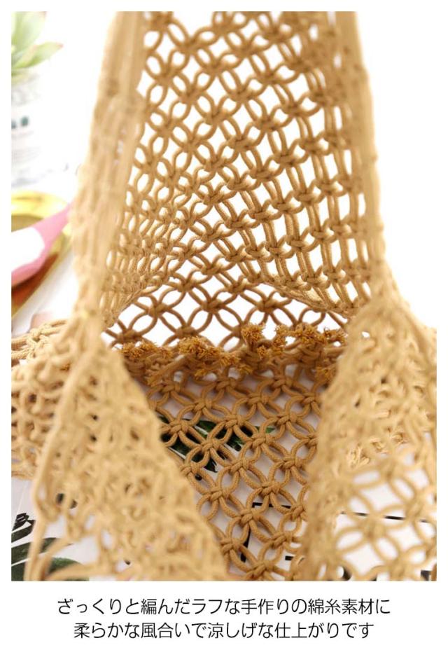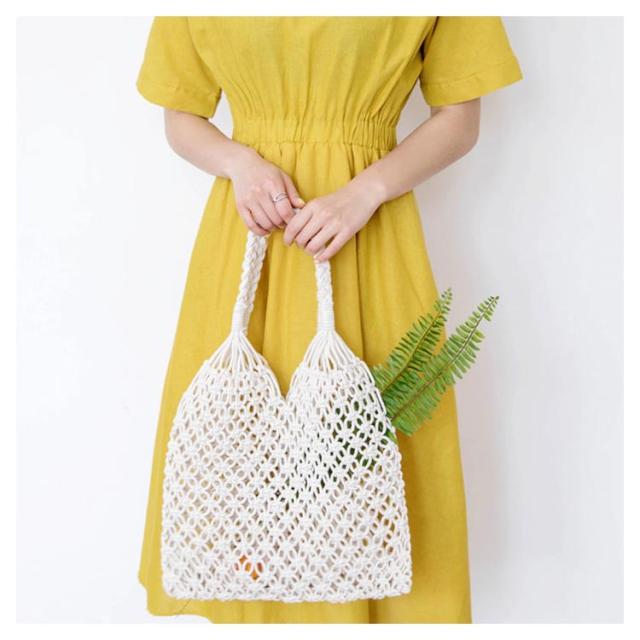 | 【シンプルなデザイン】 毎日のスタイリングに合わせやすい、カジュアルでシンプルなデザイン。 ざっくりと編んだラフな手作りの綿糸素材に、柔らかな風合いで涼しげな仕上がりです。 デイリーからレジャーシーンまで幅広く活用出来る一品に仕上がっています。 フェミニンなコーデに合わせるのもおすすめです♪ 【荷物が多くなりがちな方に最適♪】 綿糸素材を採用し、柔らかさと軽さと丈夫さが魅力のトートバッグです。 荷物が少ないときはベタンコになり、多くなったら素材の柔軟性で大容量の収容力を発揮してくれます。 ついつい荷物が多くなってしまう方にも最適です。 長財布、化粧ポーチ、手帳、スマホ、水筒、傘など収納できて、小ぶりながら大容量! 普段使いや夏のリゾートスタイルにもぴったり。 | |