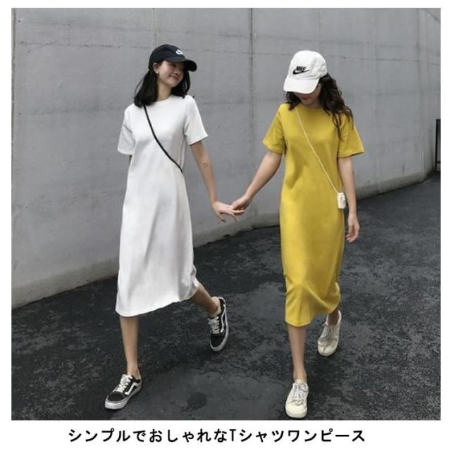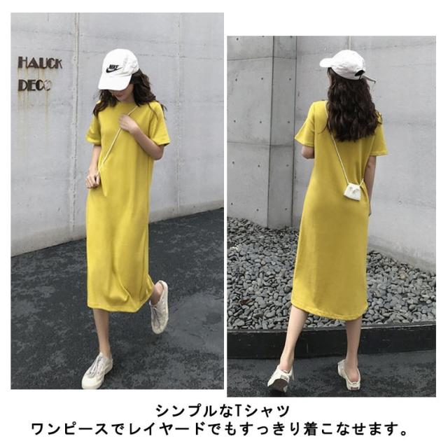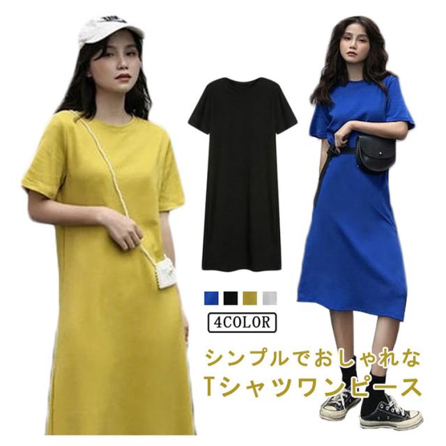【送料無料】Tシャツワンピース Tシャツ 半袖 ロング丈 ワンピ カジュアル ゆったり 無地 シンプル ルームウェア パジャマ トップス 体型カバー 大きいサイズ 長め 春 夏 秋 普段着 通勤 通学 Tワンピ M L XL 2XL 3XL