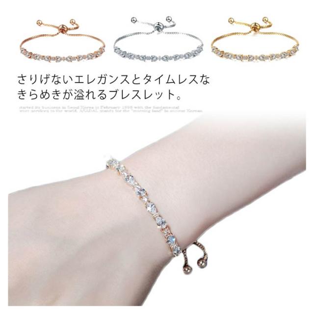 | さりげないエレガンスとタイムレスなきらめきが溢れるブレスレット。 調節可能なスライド式クロージャーでほどよくフィットするデザインに仕上げています。 光沢のあるブレスレットは、エレガントな女性に適しています。 金属アレルギーのある方でも安心して着用できます。 日常の仕事、デートの買い物、結婚式、学校など、ほとんどの場面に適しています。 | |