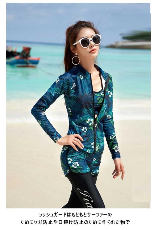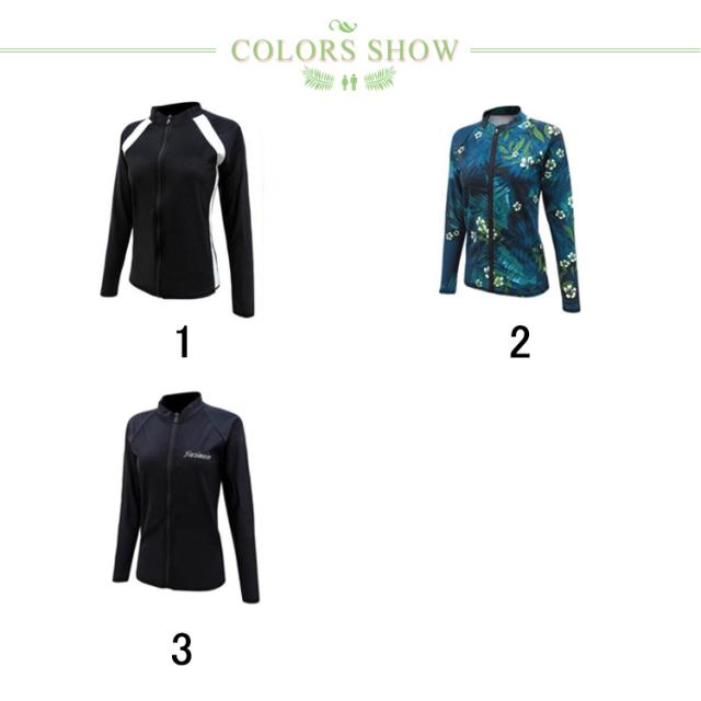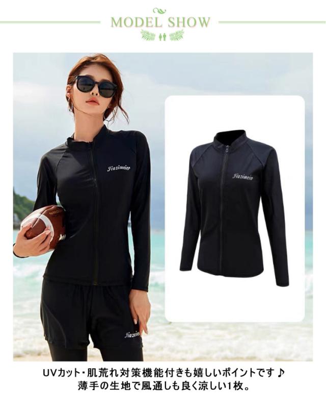 【送料無料】ラッシュガード UVカット パーカー 配色 長袖 速乾 吸水 レディース 薄手 ジップアップ フードなし 紫外線対策 体型カバー スリムフィット 韓国 黒 大きいサイズ ストレンチ ボタニカル柄 M/LL/2L/3L