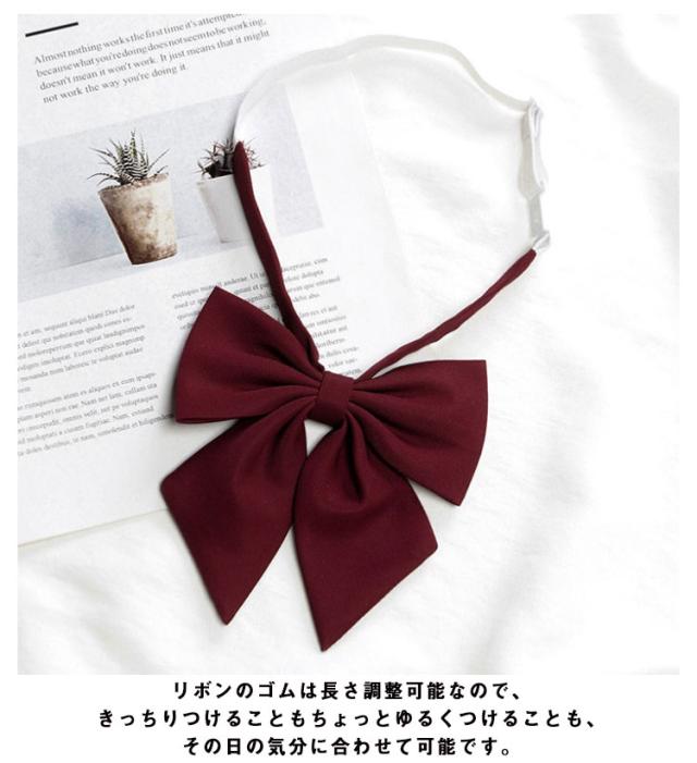 | ワンタッチで取り付けるタイプのリボンです。 リボンのゴムは長さ調整可能なので、きっちりつけることもちょっとゆるくつけることも、その日の気分に合わせて可能です。 たくさんのバリエーションの中から、毎日のリボンの着回しも楽しんでください♪ 色や結び方ひとつでもコーディネート全体の雰囲気が変わります。 | |