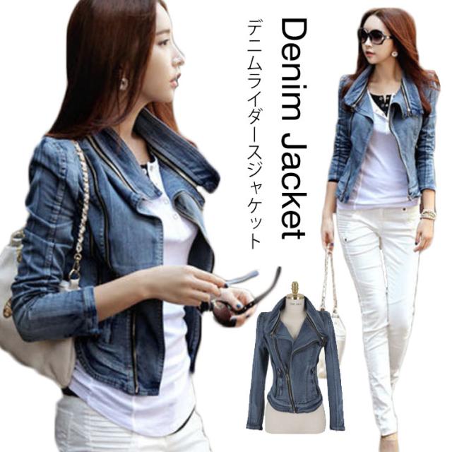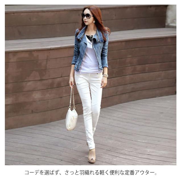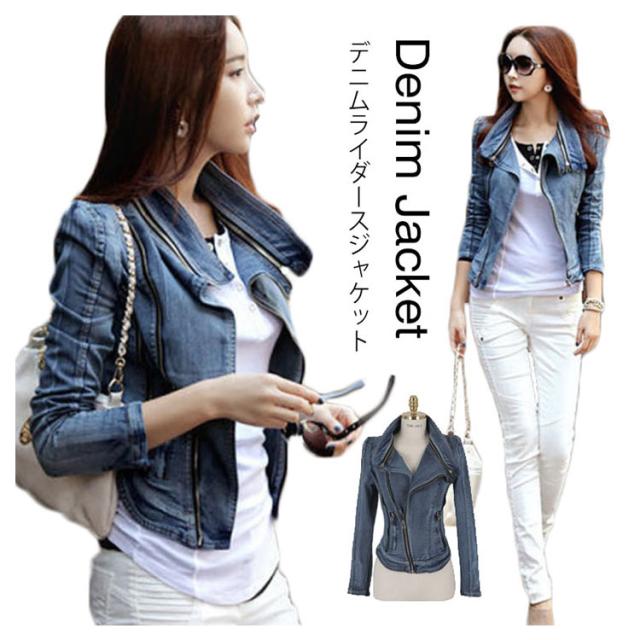 送料無料 デニム ライダースジャケット デニムジャケット Gジャン ショート丈 ジャケット レディース デニムジャケット ショート丈 ジージャン ガーリー 春 秋