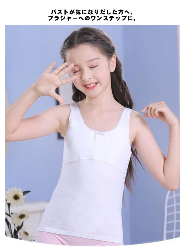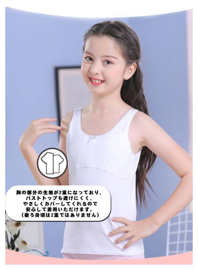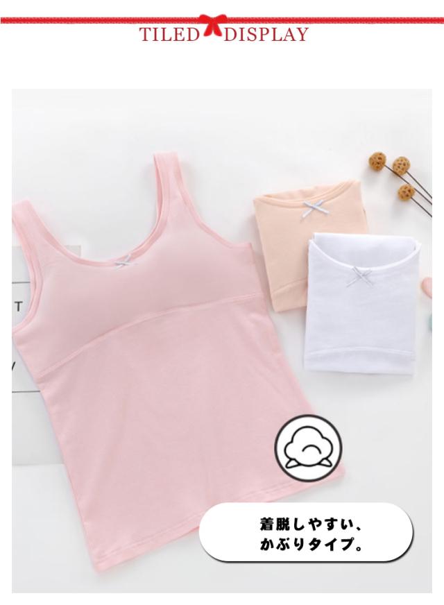 ジュニアブラ ファーストブラ インナー 胸二重タンクトップ 胸 二重 女の子 ガールズ Uネック 下着 肌着 綿 コットン 無地 全3色