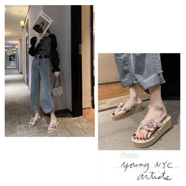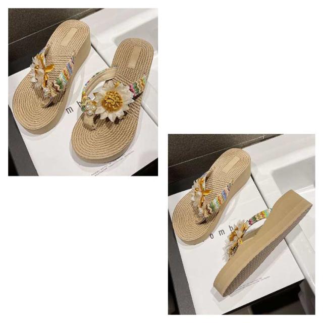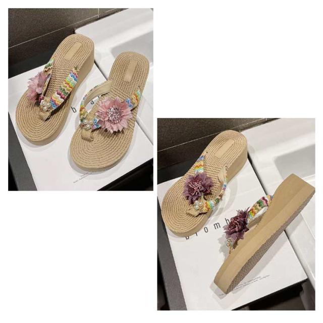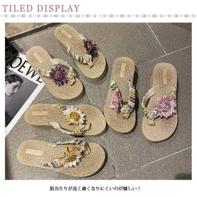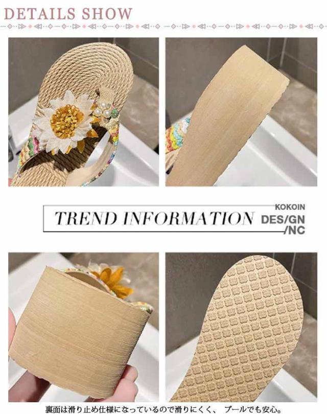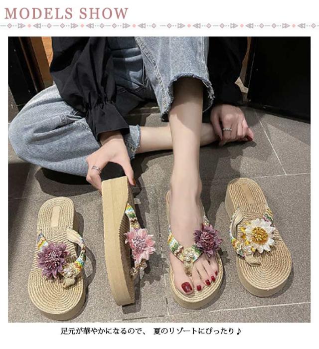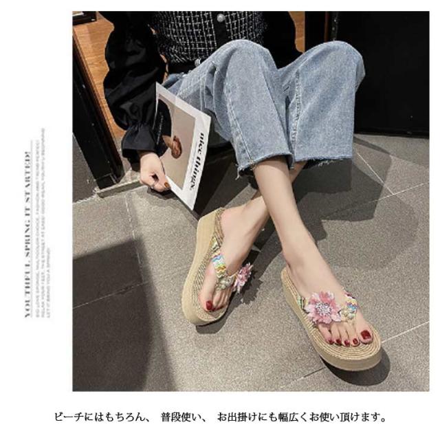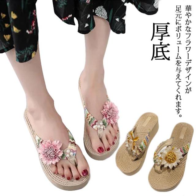 ビーチサンダル レディース 厚底 トングサンダル 歩きやすい ウェッジソール フラワー 花 海 痛くない 旅行 美脚 レジャー タウン おしゃれ 履きやすい 夏 リゾート 可愛い カジュアル ビーサン 滑り止め 女性 大人 きれいめ