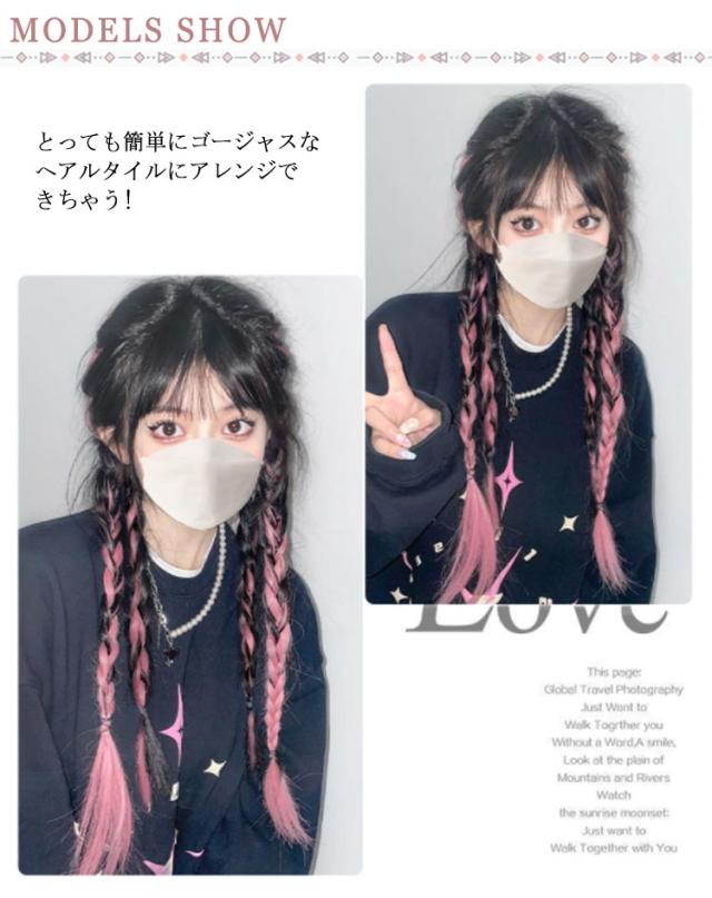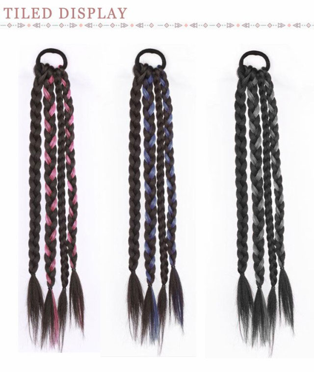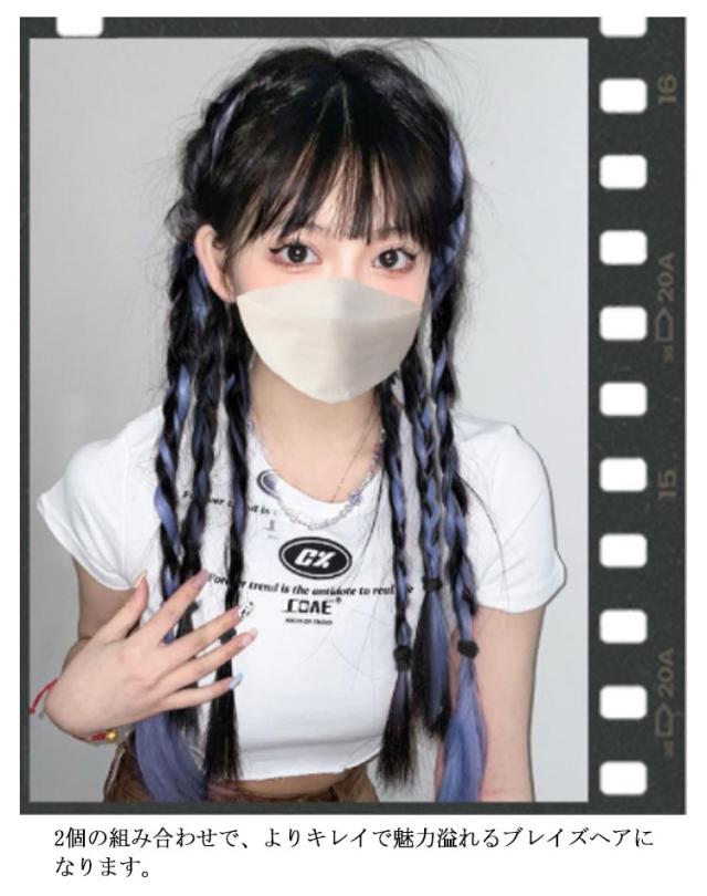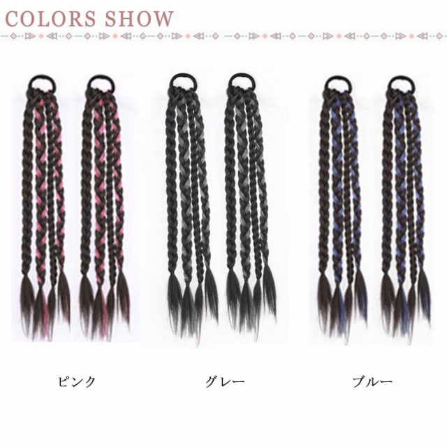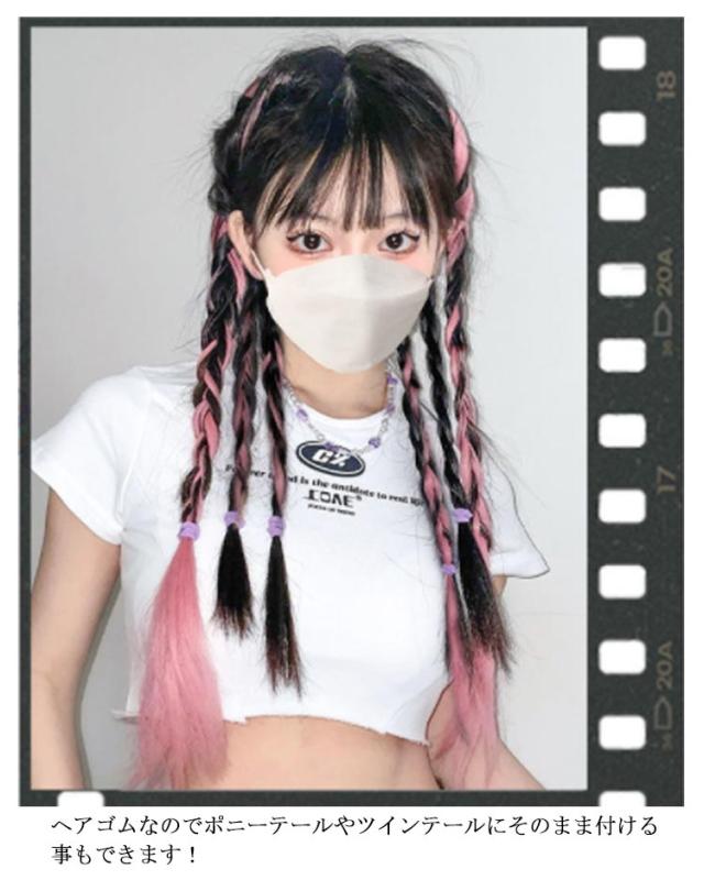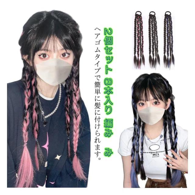 エクステ 2個セット 8本入り 三つ編み 編み込み エクステンション ツインテール ポニーテール 髪型 カラフル レディース ボリューム ウィッグ ヘアアレンジ ヒップホップ コーンロウ かつら ブレイズ カラーエクステ 送料無料