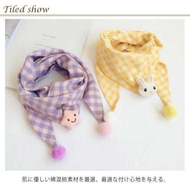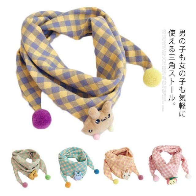 送料無料 マフラー 子供 スカーフ 三角ストール キッズストール キッズ用 ベビー チェック柄 赤ちゃん 女の子 可愛い 男の子 ポンポン 柔らかい アクセサリー
