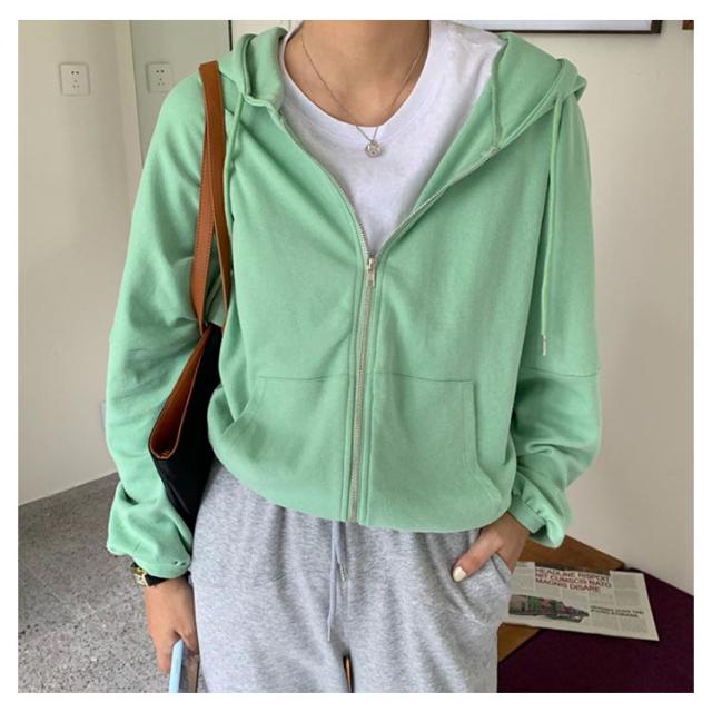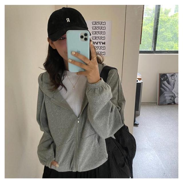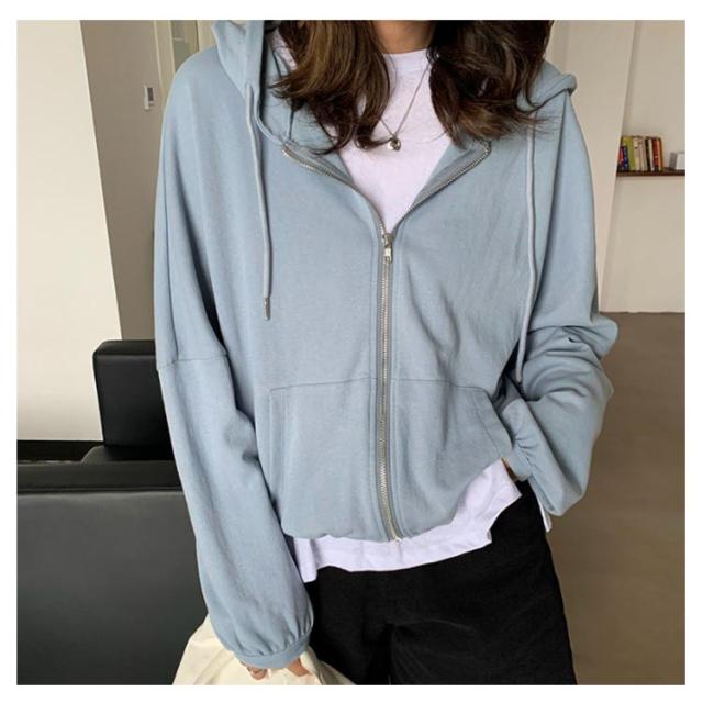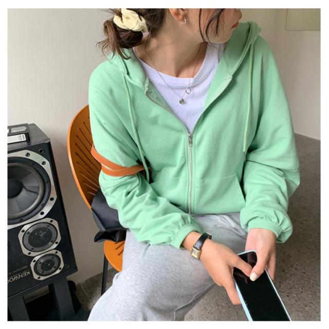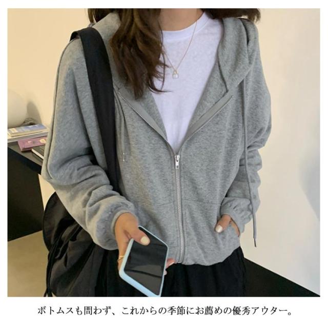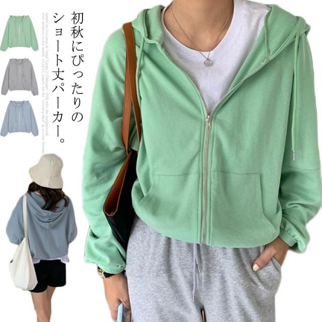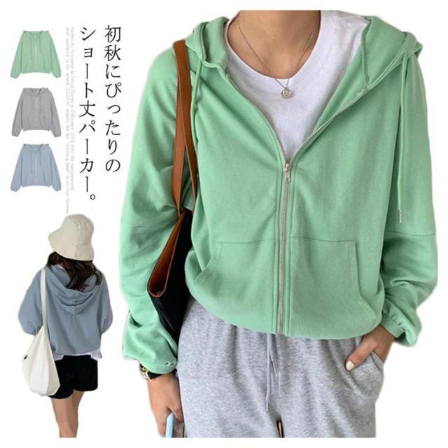スウェットパーカー パーカー レディース ジップアップパーカー ショート丈パーカー フード付き アウター パーカ 無地 ゆったり ジップアップ 可愛い 春 秋 大きサイズ