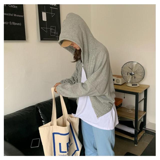 | 初秋にぴったりのショート丈パーカー。 ゆったりとした作りでさりげなく体型カバーできます。 フード付きのジップアップtypeだから着脱ぎも簡単。 ボトムスも問わず、これからの季節にお薦めの優秀アウター。 | |