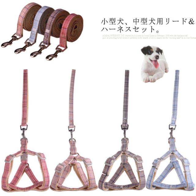 送料無料 犬用品 ペット ハーネス リード セット 小型犬用ハーネス 猫用 胴輪 軽量 散歩 ソフト胸あて 簡単脱着式 調節可能 4色 サイズ調節可 ドッグウエア ペットグッズ ペット用品 お散歩グッズ チェック柄