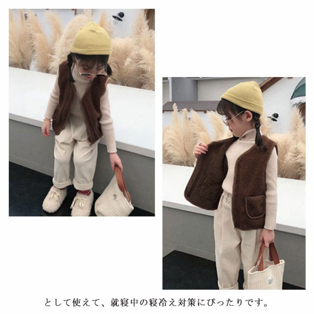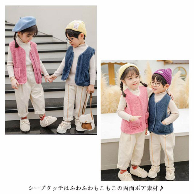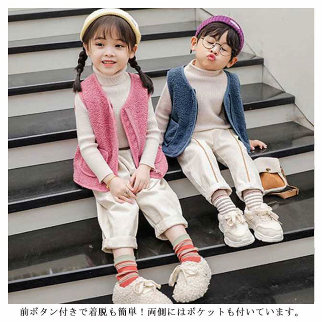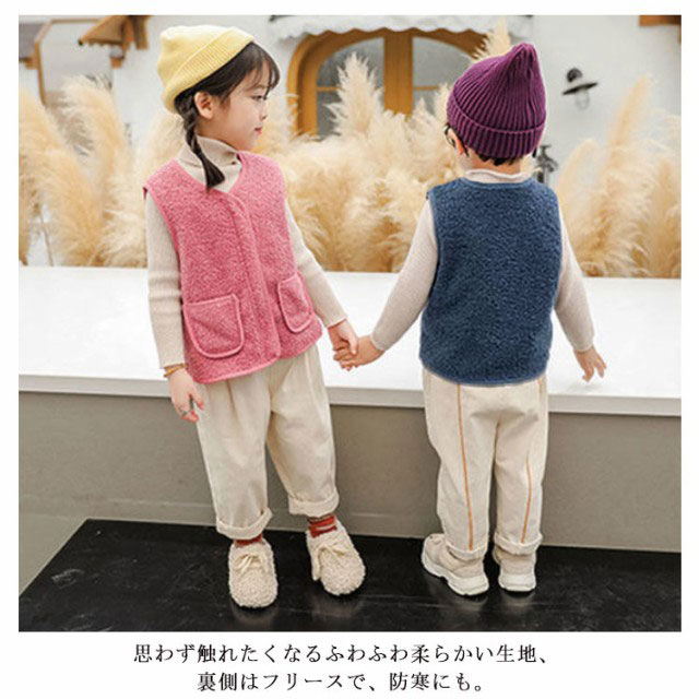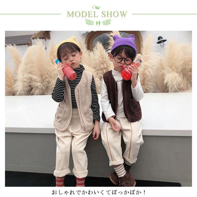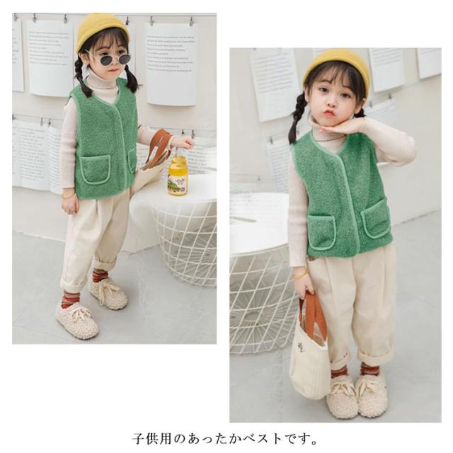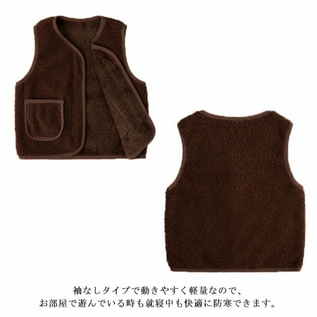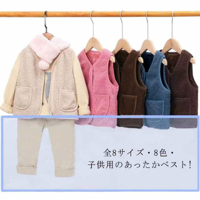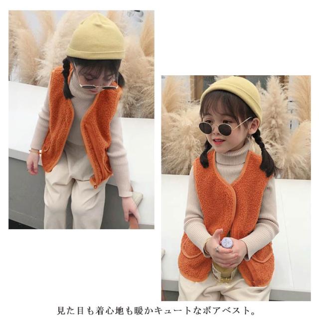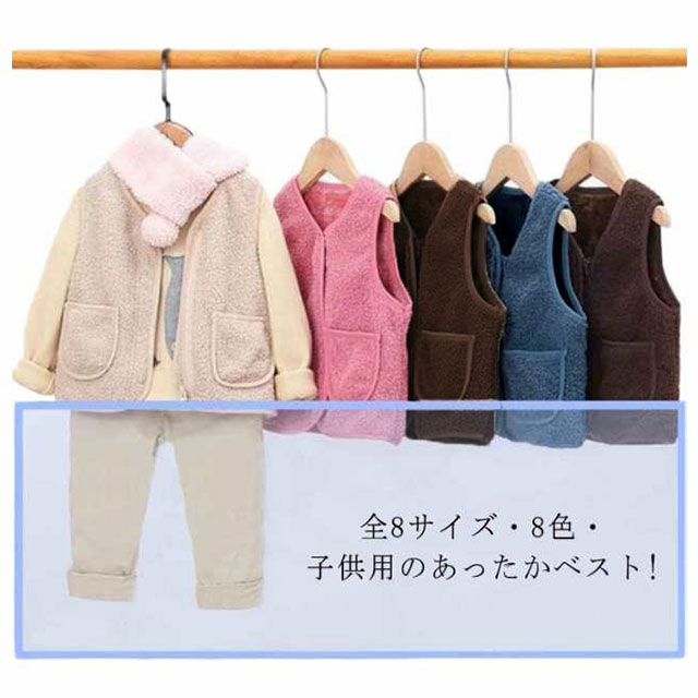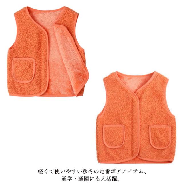 全8サイズ・送料無料! ベスト ボア キッズ 男の子 女の子 子ども カジュアル アウター トップス ボアベスト子供 無地 ジュニア ファッション ベビーベスト 襟なし フード無し ノーカラー ナチュラル 冬 温かい 暖かい 上着 通園 ジャケット