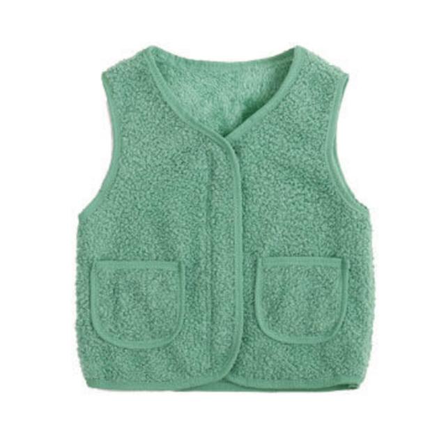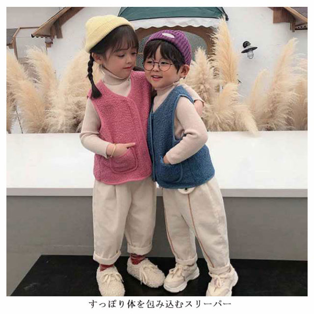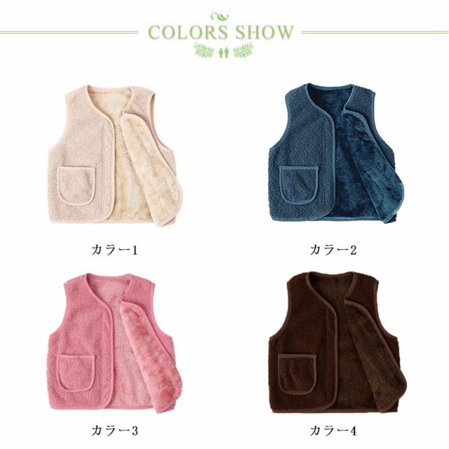 | 全8サイズ・8色・子供用のあったかベスト! おしゃれでかわいくてぽっかぽか! 子供用のあったかベストです。 動き回る小さなお子様にもおすすめ! 見た目も着心地も暖かキュートなボアベスト。 すっぽり体を包み込むスリーパー として使えて、就寝中の寝冷え対策にぴったりです。 思わず触れたくなるふわふわ柔らかい生地、裏側はフリースで、防寒にも。 前ボタン付きで着脱も簡単!両側にはポケットも付いています。 シープタッチはふわもこの両面ボア素材♪ 袖なしタイプで動きやすく軽量なので、お部屋で遊んでいる時も就寝中も快適に防寒できます。 軽くて使いやすい秋冬の定番ボアアイテム、通学・通園にも大活躍。 | |
