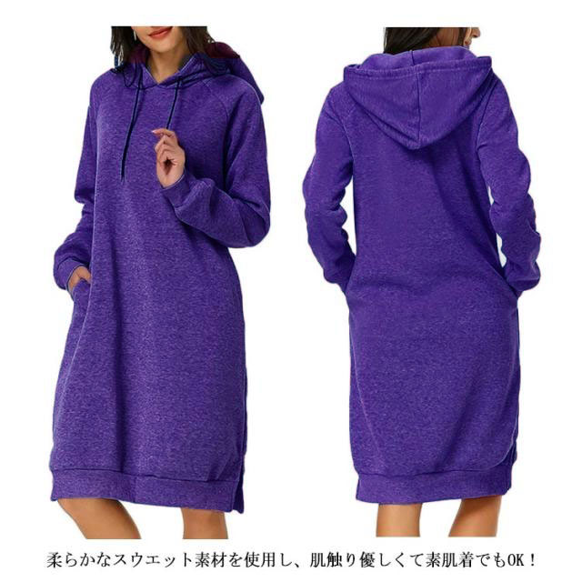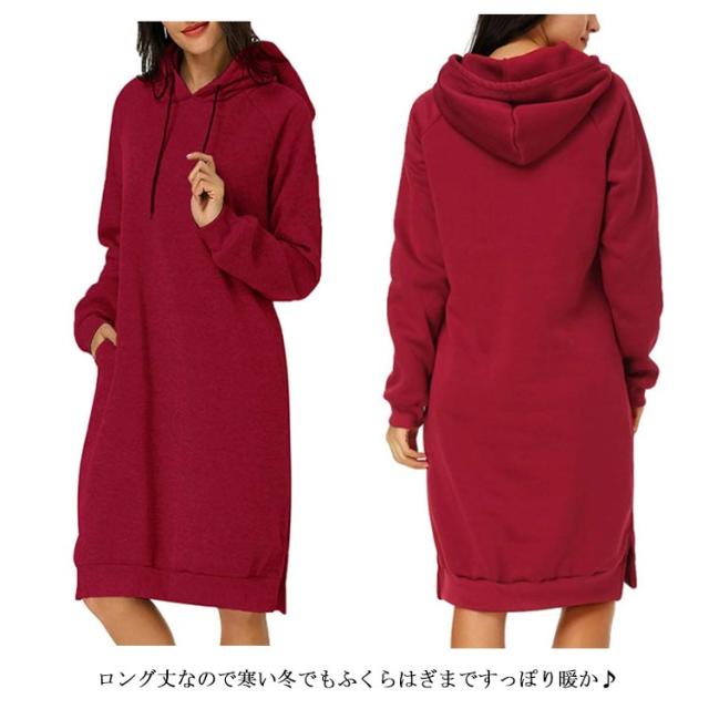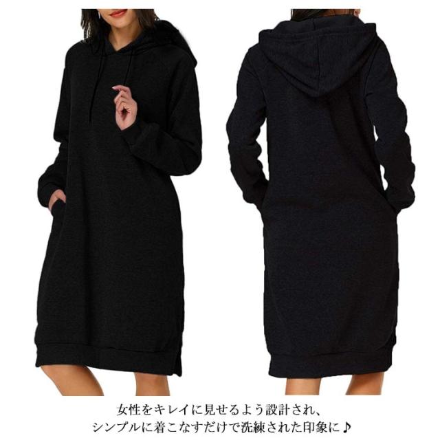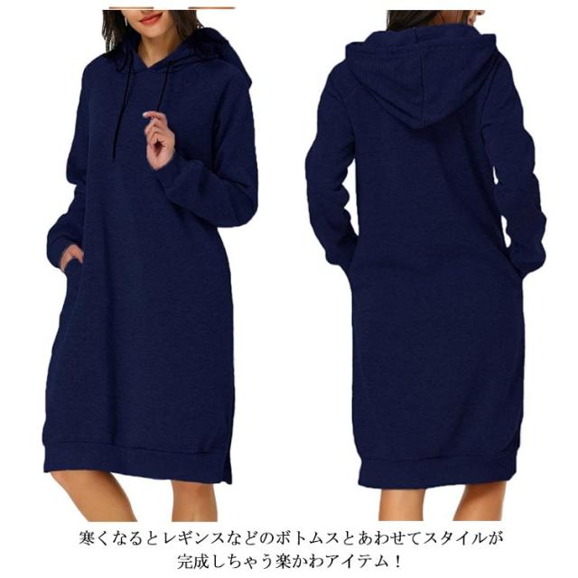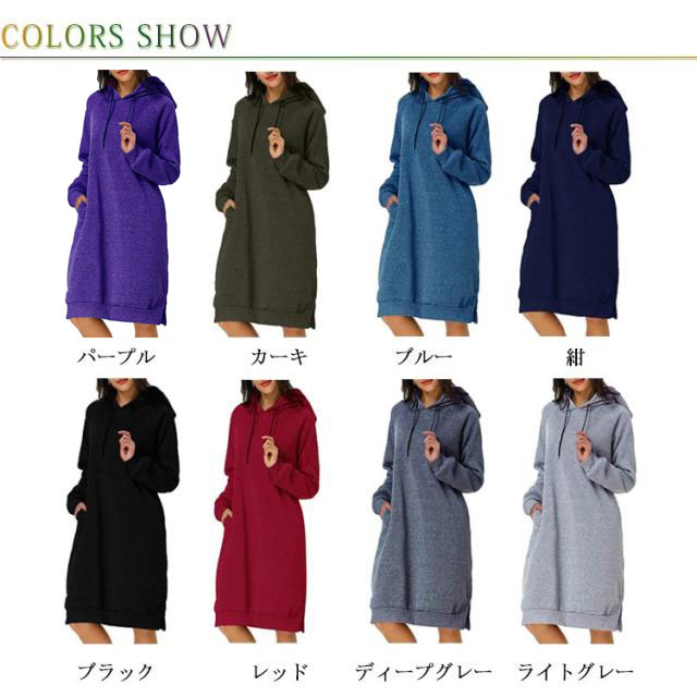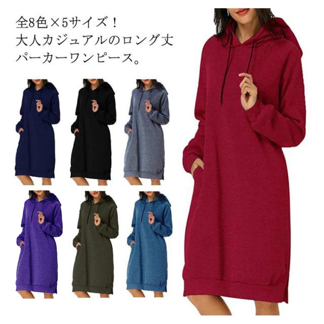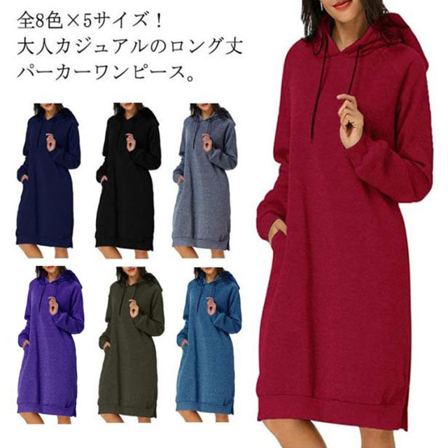 全8色×5サイズ!パーカーワンピース ロングワンピース パーカー ロング丈 レディース ロングパーカー フード付き パーカーワンピ プルオーバー カジュアル 大きサイズ 秋 冬