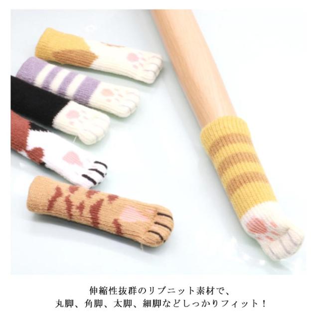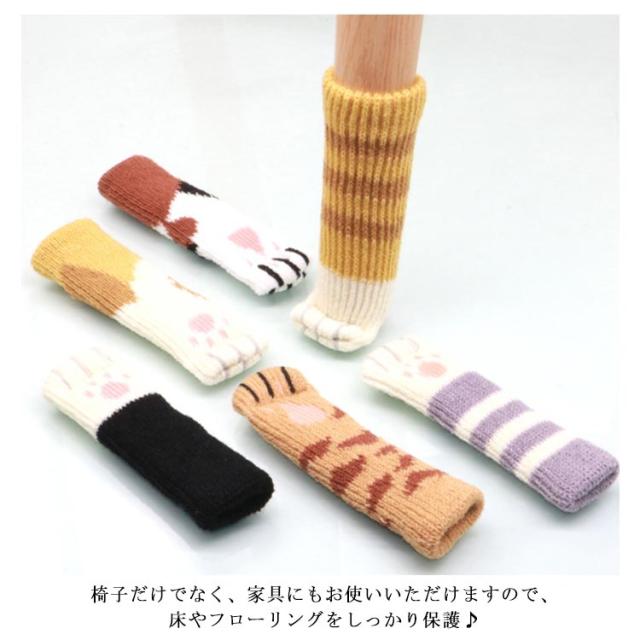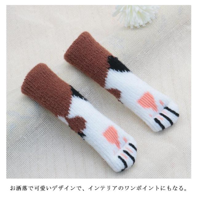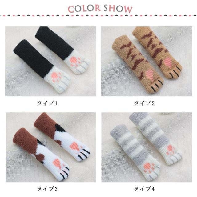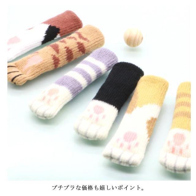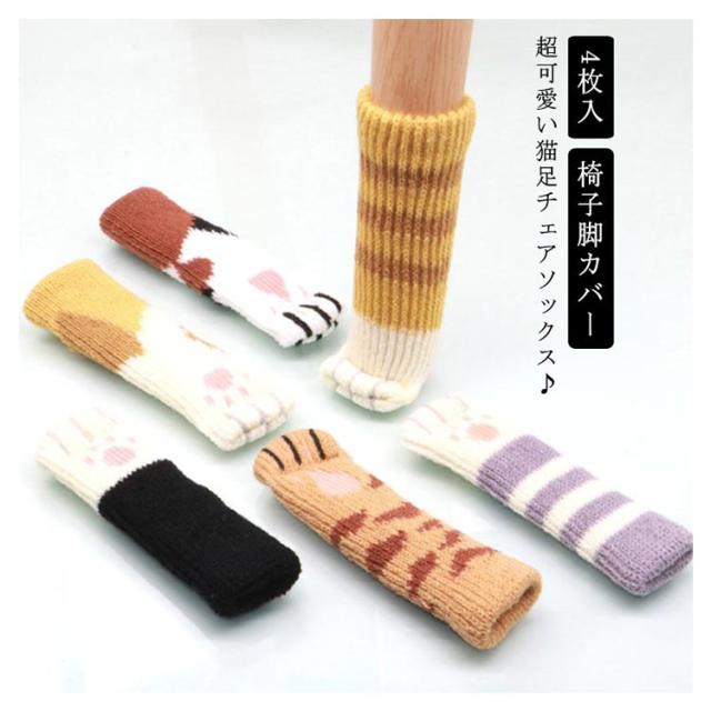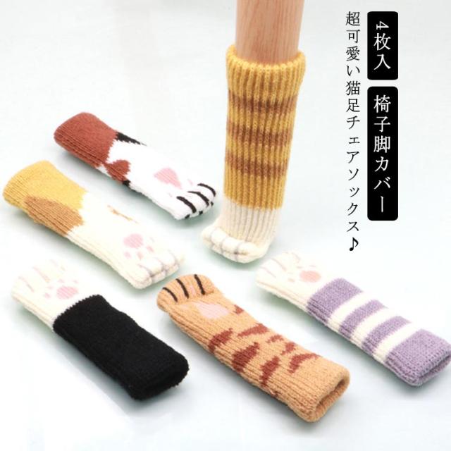 送料無料 可愛い肉球 椅子脚カバー 猫柄 チェアソックス テーブル脚カバー 脱げにくい 1脚分 4枚入 ねこあし チェアカバー イス脚カバー ベッド 机 テーブル