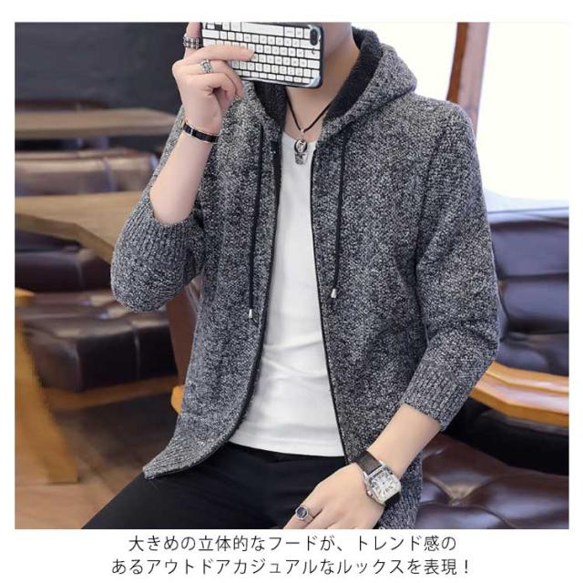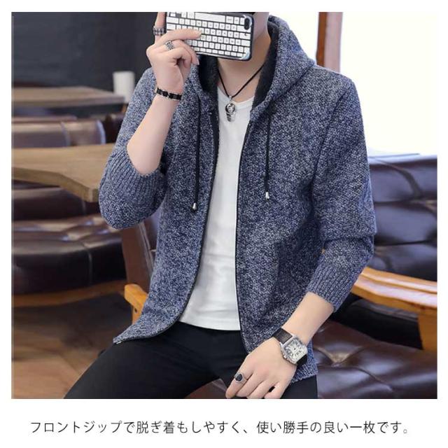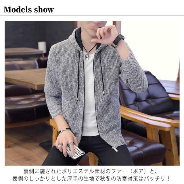 裏ボアジャケット ニットカーディガン コーディガン メンズ ボアコート フード付き アウター カーディガン メンズ フーデッド 裏ボア 長袖 クルーネック 大きいサイズ 春 秋 冬 防寒着 ジップアップ おしゃれ 厚手 学生 ビジネス ケーブル
