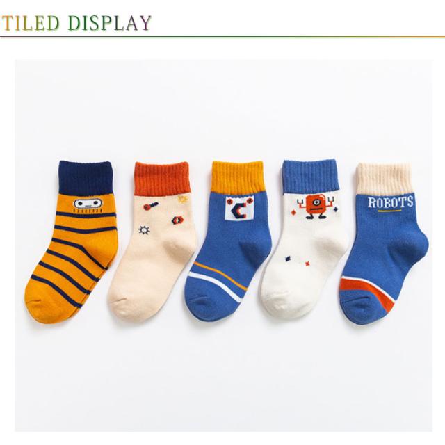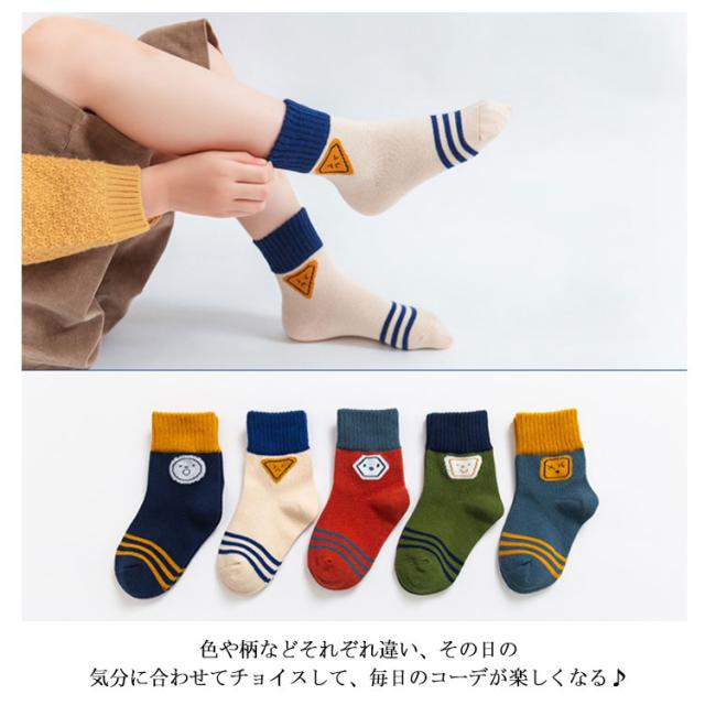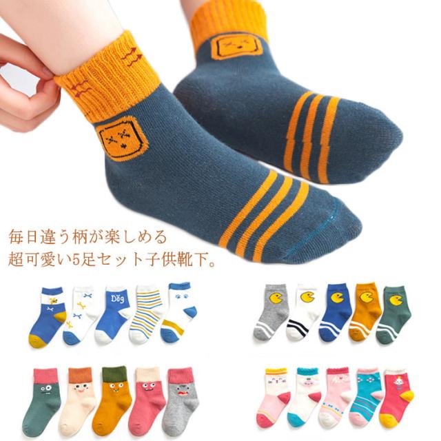 送料無料 5足組 子供 靴下 ソックス ショート 男の子 女の子 可愛い 怪獣柄 ボーダー 犬柄 ベビー キッズ 靴下 10-23cm 保育園 幼稚園 小学生 春夏秋冬 ジュニア