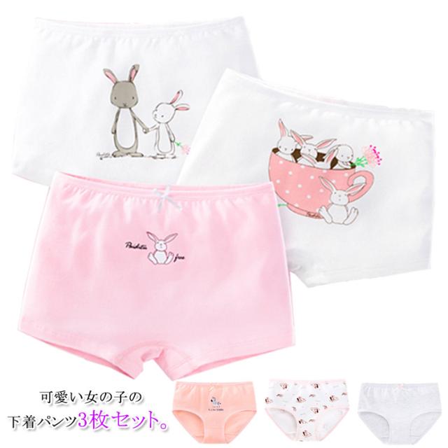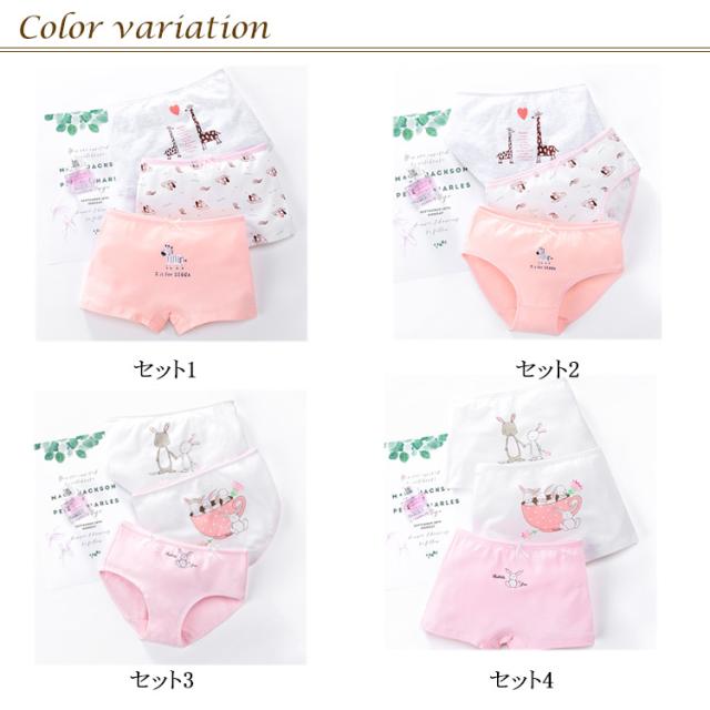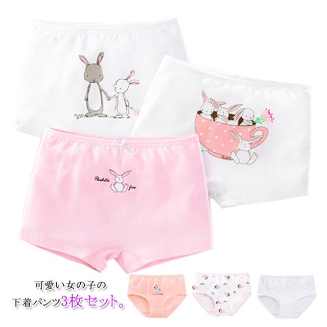 送料無料 3枚セット ショーツ 子供用 ボクサーパンツ インナー ブリーフ 下着 女の子 動物柄 ジュニア 通気性 お洒落 ストレッチ 柔らかい 可愛い