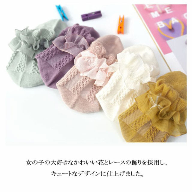 | 毎日のお子様の登園や通学用にもぴったりなソックス。 通気性が高く履き心地の良い素材のため蒸れを防いで素足をやさしく包み込みます。 伸縮性も良く肌触りの良いソフトな素材感で足にフィットする快適な履き心地! 女の子の大好きなかわいい花とレースの飾りを採用し、 キュートなデザインに仕上げました。 入園式・卒園式・入学式・卒業式・発表会・結婚式等のフォーマルにもオススメです。 | |