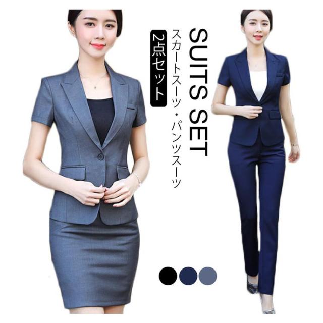 送料無料 半袖スーツ 2点セット フォーマルスーツ スカートスーツ パンツスーツ 上下セット レディース スーツ 2点セット OL風 ビジネススーツ セレモニースーツ 通勤 オフィス 事務服 制服 ビジネス 就職