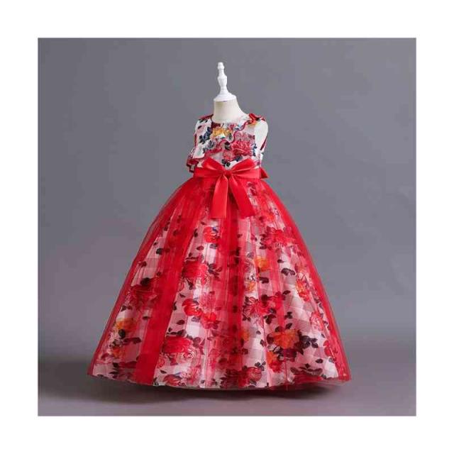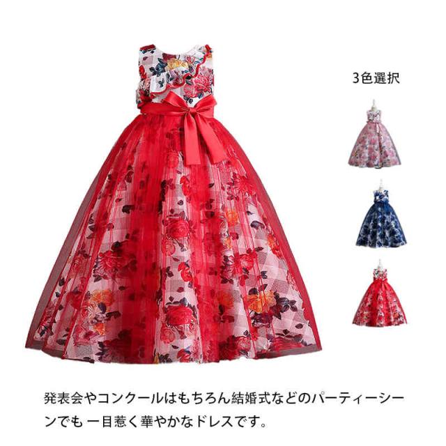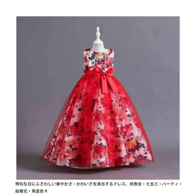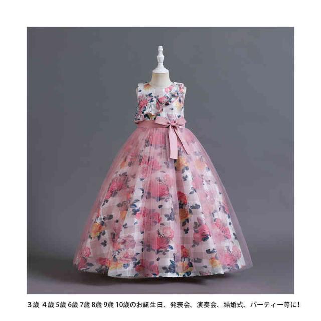 大きいリボン付き ドレス ロングドレス 子どもドレス 花柄 お呼ばれ チュール 子供ドレス ピアノ発表会 フォーマル 七五三 ジュニアドレス 結婚式 入園式 七五三 お呼ばれ 子供ドレス ドレス キッズ パーティードレス 演奏会 発表会