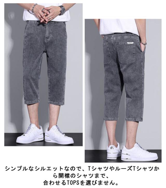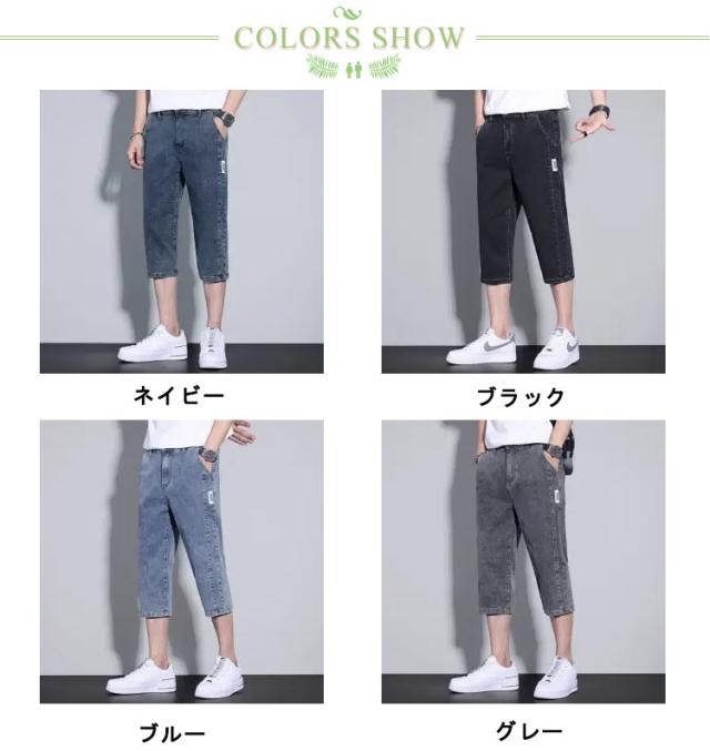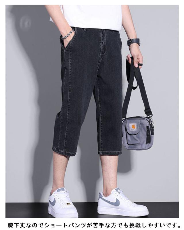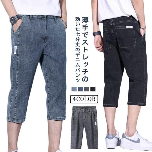 メンズ 薄手 【送料無料】デニムパンツ 4色 ジーンズ デニムショートパンツ ハーフパンツ 大人 デニム 黒 七分丈 ストレンチ 七分丈 カジュアル サイドライン 無地 シンプル 大きいサイズ XL LL イージーパンツ