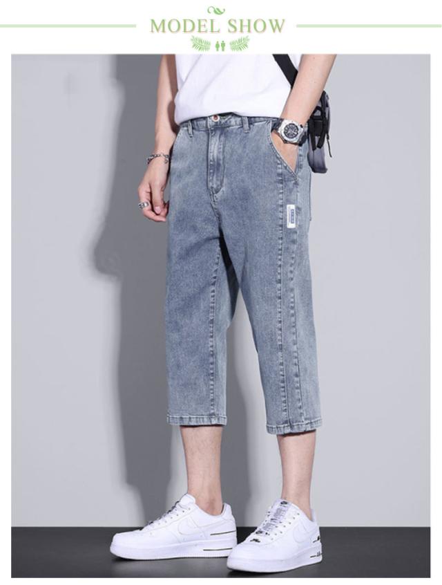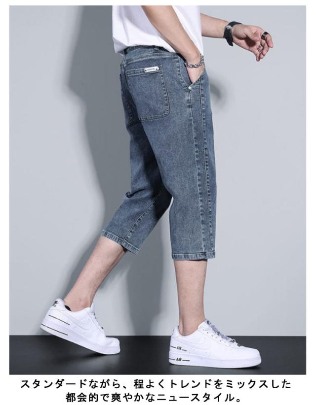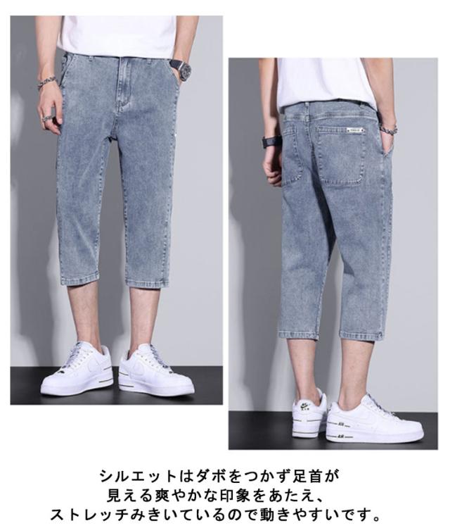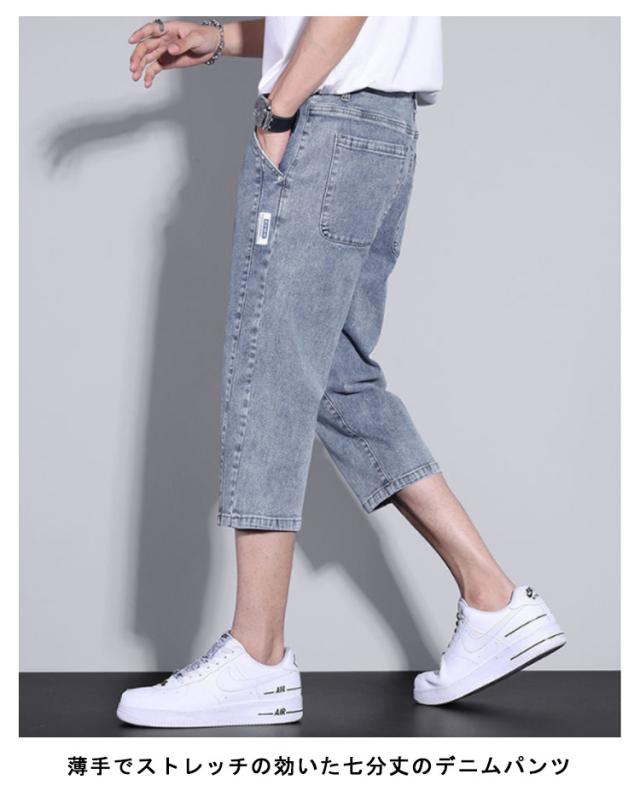 | 薄手でストレッチの効いた七分丈のデニムパンツ シルエットはダボをつかず足首が見える爽やかな印象をあたえ、ストレッチみきいているので動きやすいです。 スタンダードながら、程よくトレンドをミックスした都会的で爽やかなニュースタイル。 清涼感と機能性を発揮してくれる、サマーシーズンにマストな1本です。 膝下丈なのでショートパンツが苦手な方でも挑戦しやすいです。 シンプルなシルエットなので、TシャツやルーズTシャツから開襟のシャツまで、合わせるTOPSを選びません。 | |