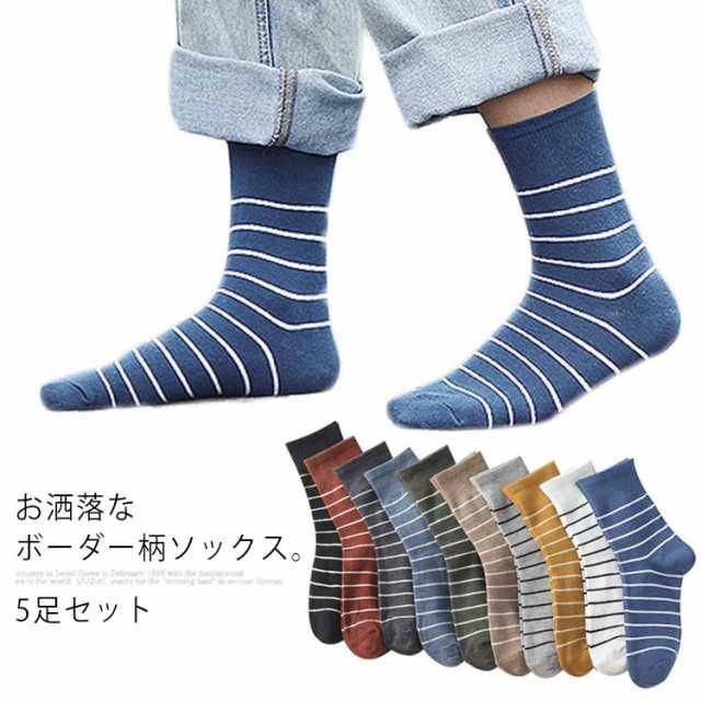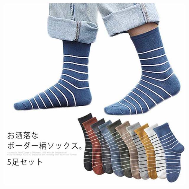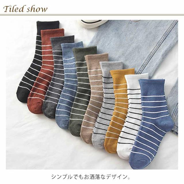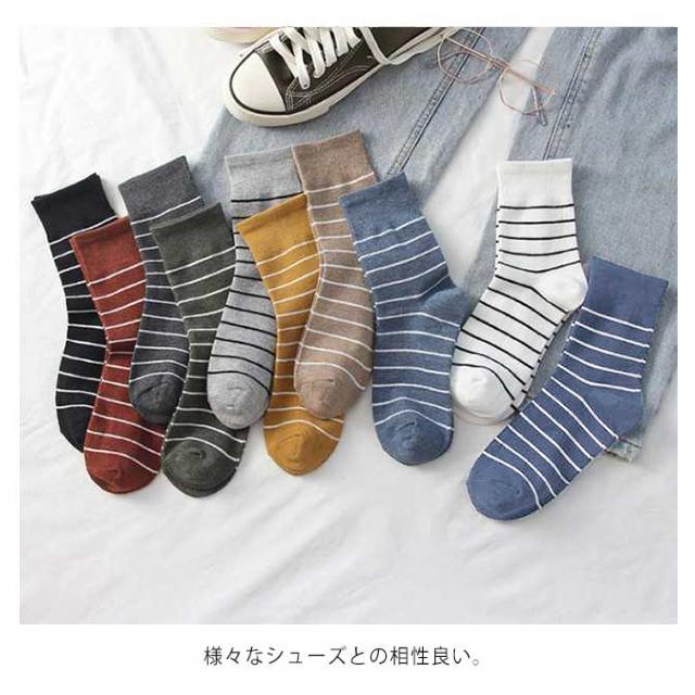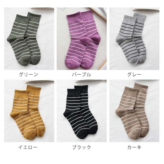送料無料 5足セット ソックス レディース ソックスセット 靴下 ニットソックス リブソックス クルー ボーダー柄 伸縮性 小物 アクティブ ストレッチ性 秋冬新作