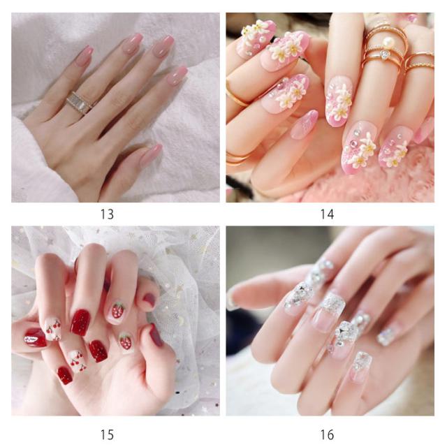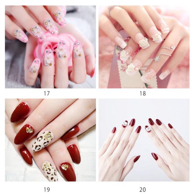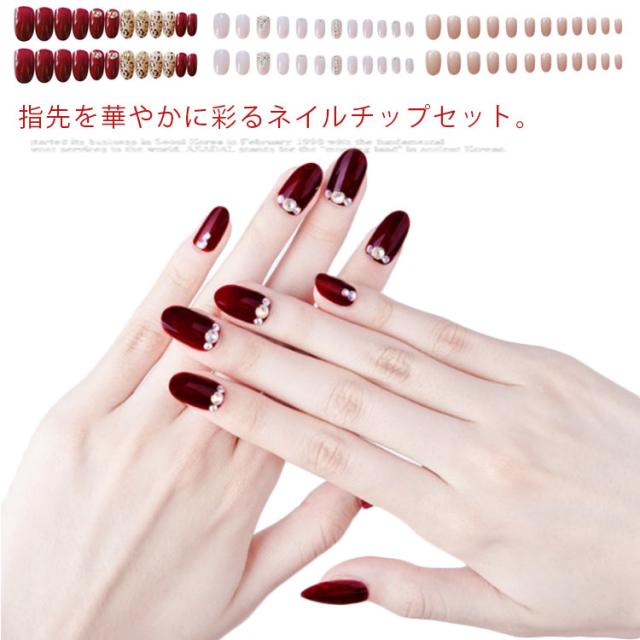 送料無料 ネイルチップ レディース つけ爪ネイルチップ 24枚セット つけ爪 ショートタイプ ショートネイル 短いつけ爪 ビジュー付き 両面接着テープ付き 花柄 無地 キラキラ 華やか 可愛い キレイめ ウエディング 結婚式 披露宴