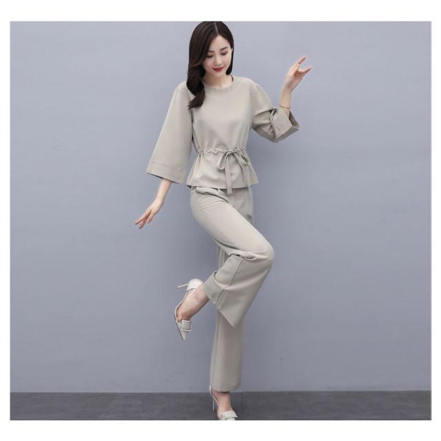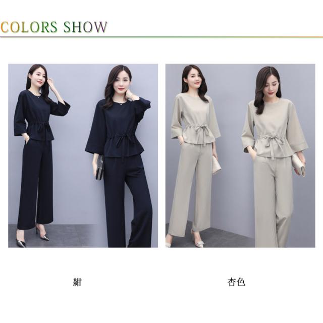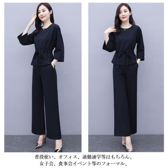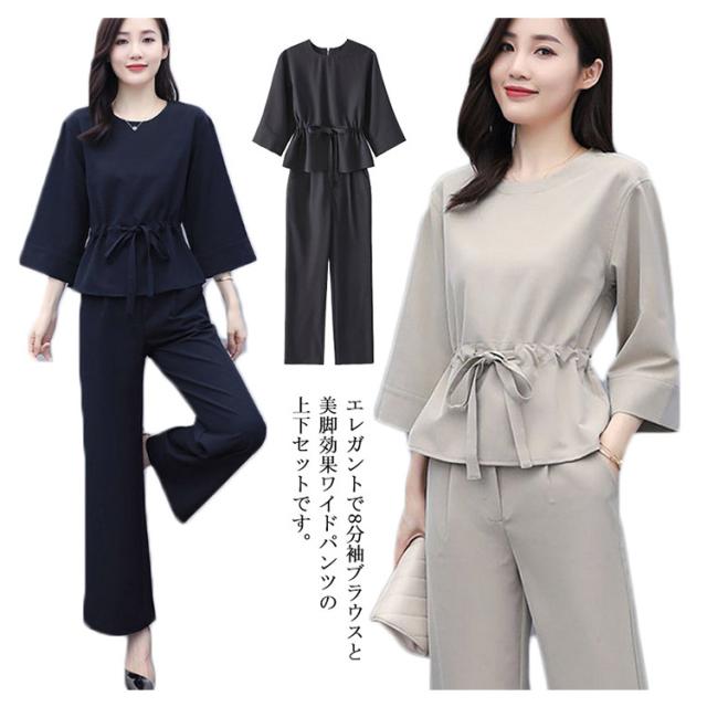 上下2点セット レディース セットアップ プルオーバートップス ワイドパンツ 9分丈 シンプル 無地 20代 30代 40代 春服 秋服 通勤着 カジュアル