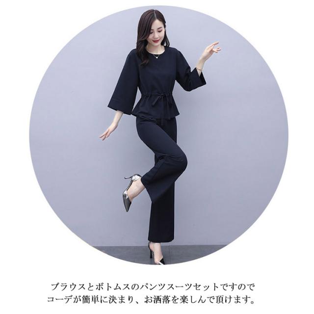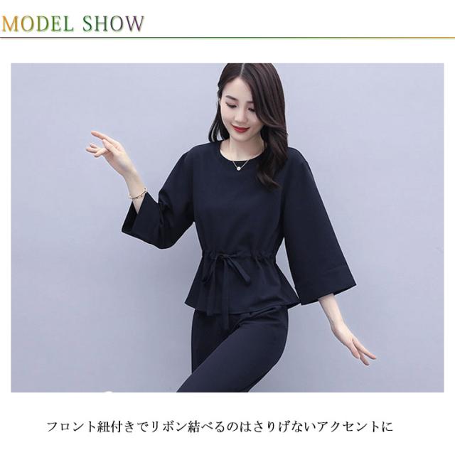 | エレガントで8分袖ブラウスと美脚効果ワイドパンツの上下セットです。 フロント紐付きでリボン結べるのはさりげないアクセントに さらさらと快適な素材で、爽やかな印象を与えます。 ブラウスとボトムスのパンツスーツセットですのでコーデが簡単に決まり、お洒落を楽しんで頂けます。 普段使い、オフィス、通勤通学等はもちろん、女子会、食事会イベント等のフォーマル、 シーンにもピッタリの大人の気品漂うエレガンスなセットアップ。 | |