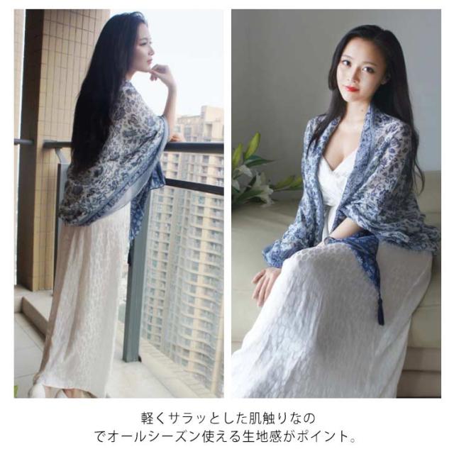 送料無料 ストール 花柄 レディース タッセル付き ストール 大判ストール ショール 日よけ 春ストール 大判マフラー 大判 ストール マフラー スカーフ 薄手 春夏