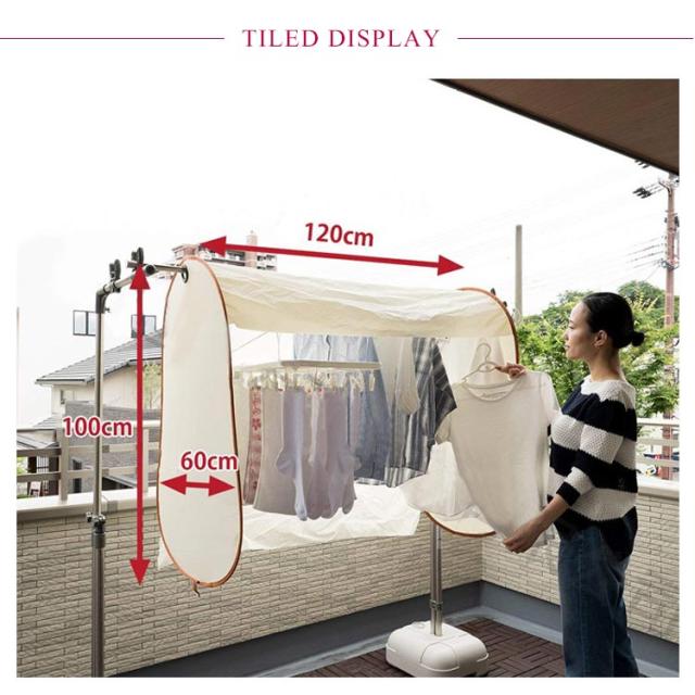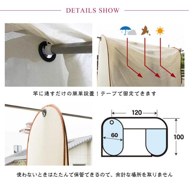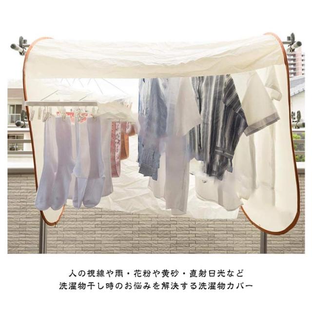洗濯物カバー 120cm ハンガーラックカバー 洗濯物干し 衣類カバー ランドリーテント 屋外 花粉対策 雨よけ 陰干し 目隠し 物干し ベランダ 鳥対策 黄砂 ホコリ コンパクト収納 ベージュ