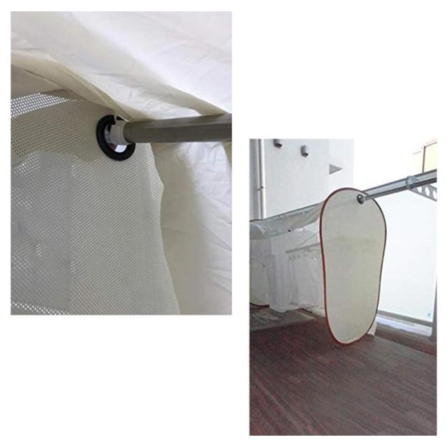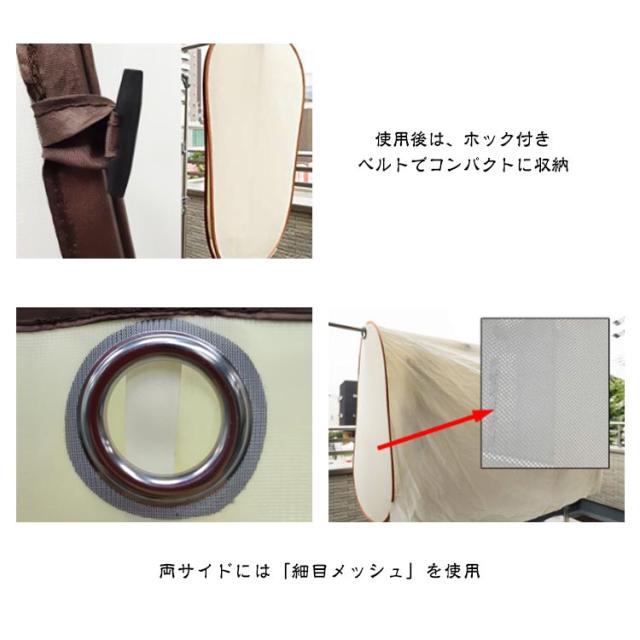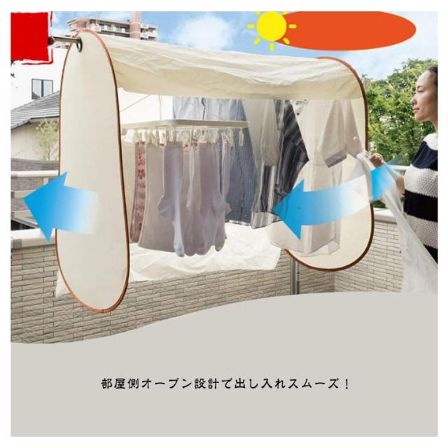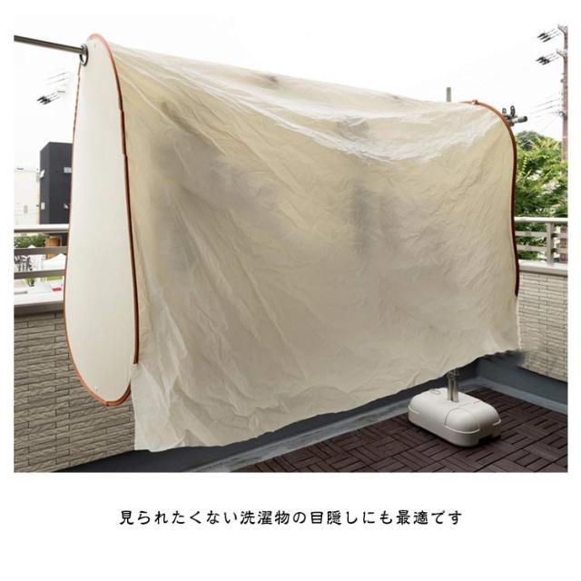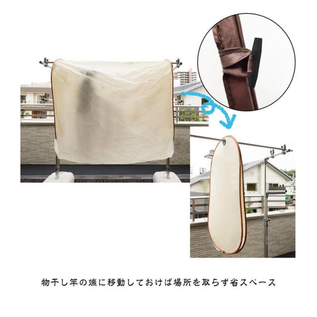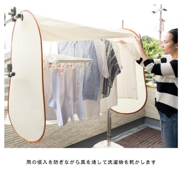 | お天気を気にせず洗濯物が干せる!急な雨から洗濯物をガード! 人の視線や雨・花粉や黄砂・直射日光など、洗濯物干し時のお悩みを解決する洗濯物カバー。 竿に通すだけの簡単設置!テープで固定できます。 部屋側オープン設計で出し入れスムーズ! 見られたくない洗濯物の目隠しにも最適です。 両サイドには「細目メッシュ」を使用。雨の侵入を防ぎながら風を通して洗濯物を乾かします。 使用後は、ホック付きベルトでコンパクトに収納。 物干し竿の端に移動しておけば場所を取らず省スペース。 使わないときはたたんで保管できるので、余計な場所を取りません。 | |