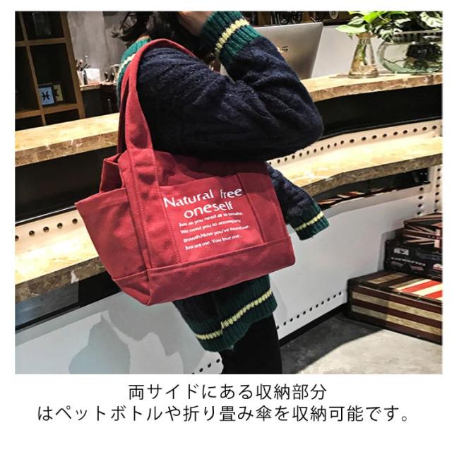 送料無料 トートバッグ キャンバス 大容量 英字ロゴ レディース マザーズバッグ 手提げ エコバッグ 大容量 お洒落 通勤 通園 肩掛け シンプル