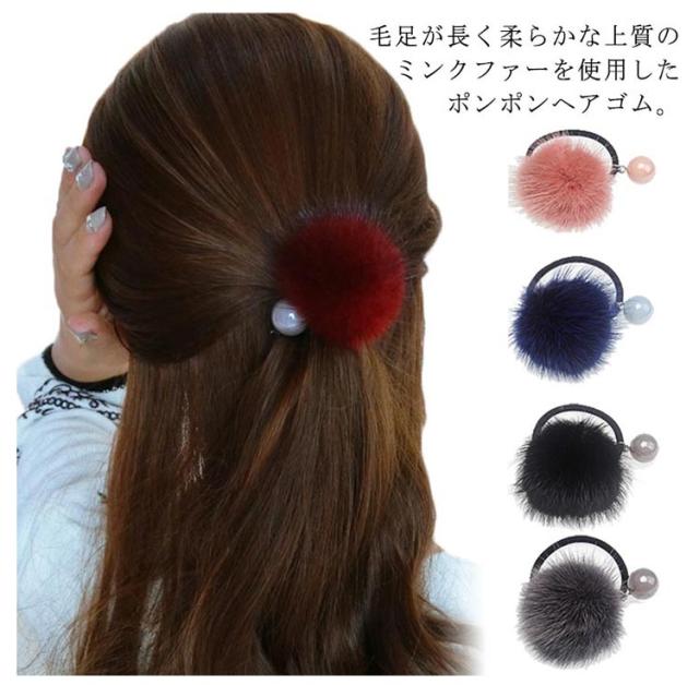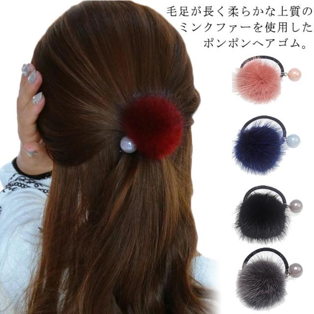 送料無料 ヘアアクセサリー ヘアゴム ファー パール ポンポン ボール モコモコファー まとめ髪 簡単 ヘアアレンジ 秋冬 シーズン 髪留め まとめ髪 髪飾り トレンド 大人 カジュアル デイリー アクセサリー ギフト