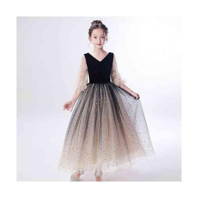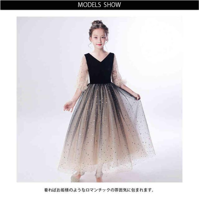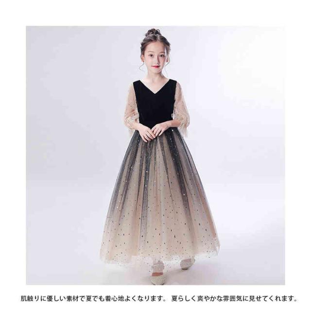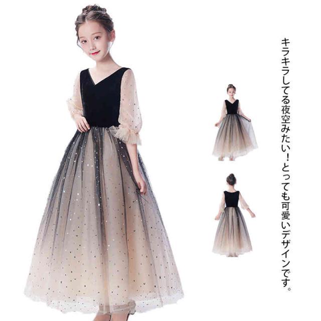 キラキラ 星空 子供ドレス キッズドレス ロングドレス フォーマル ワンピース 女の子 子ども ピアノ発表会 キッズ 誕生日 パーティー 服 子供ドレス フォーマル発表会 お誕生会 ジュニア 子供服 子供フォーマルド 入学式 結婚式 卒業式 パーティー 入園式