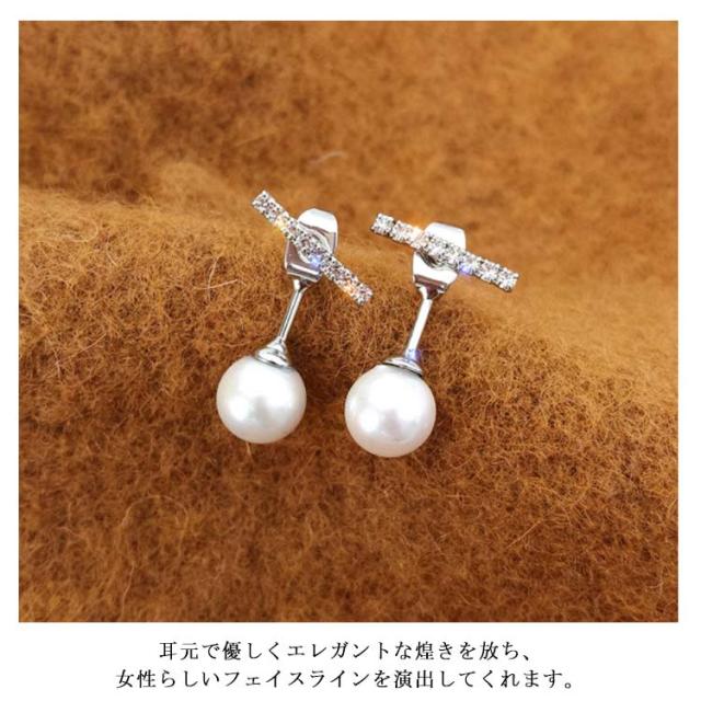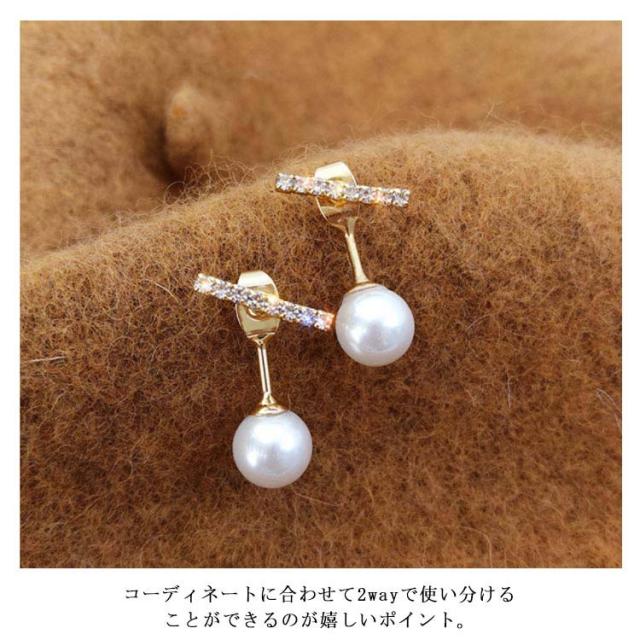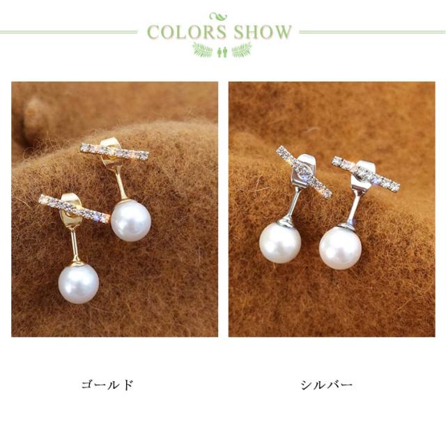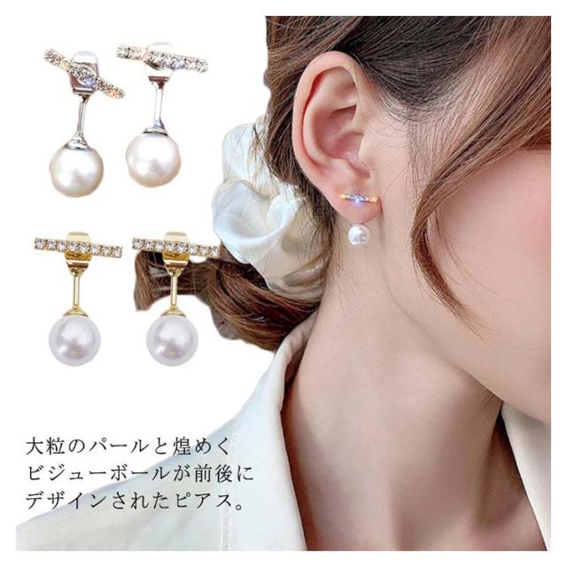 送料無料 ダブルフェイス ピアス 一粒パール パールピアス アクセサリー イヤリング バックキャッチピアス ビジュー キラキラ 耳飾り レディース お洒落 韓国ファッション