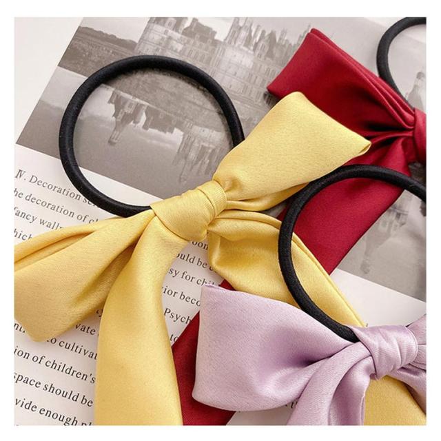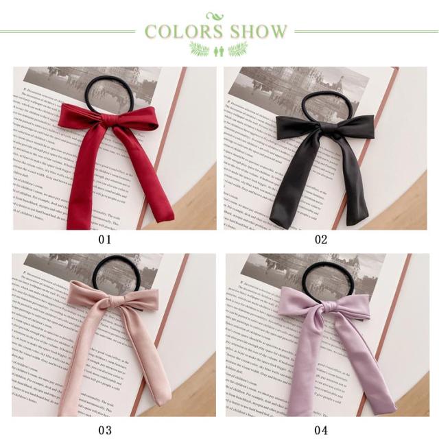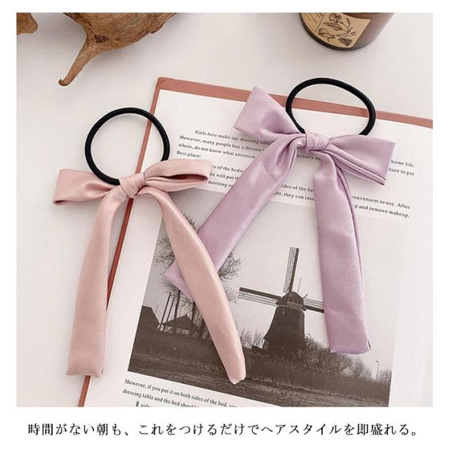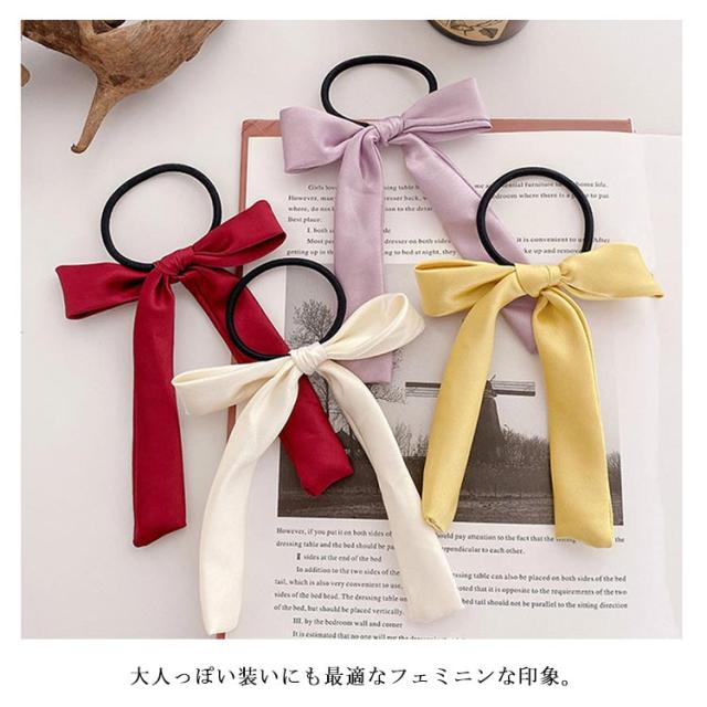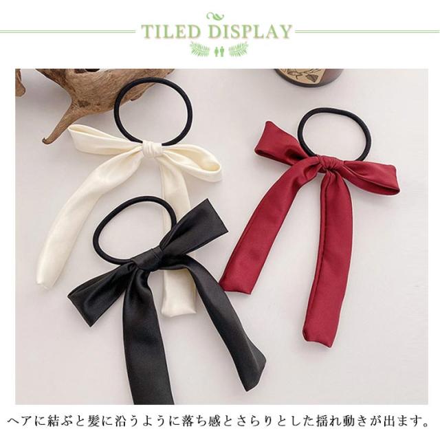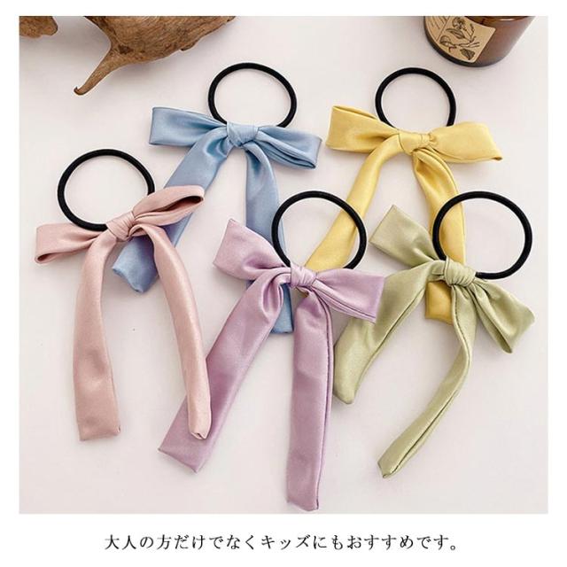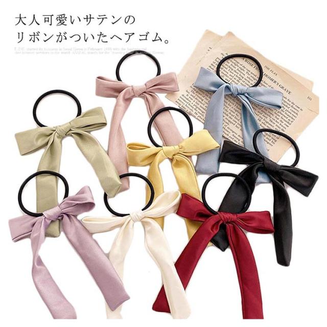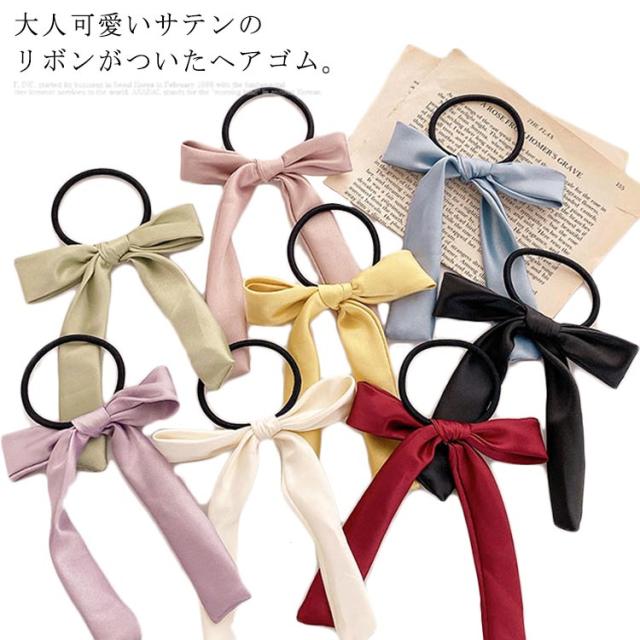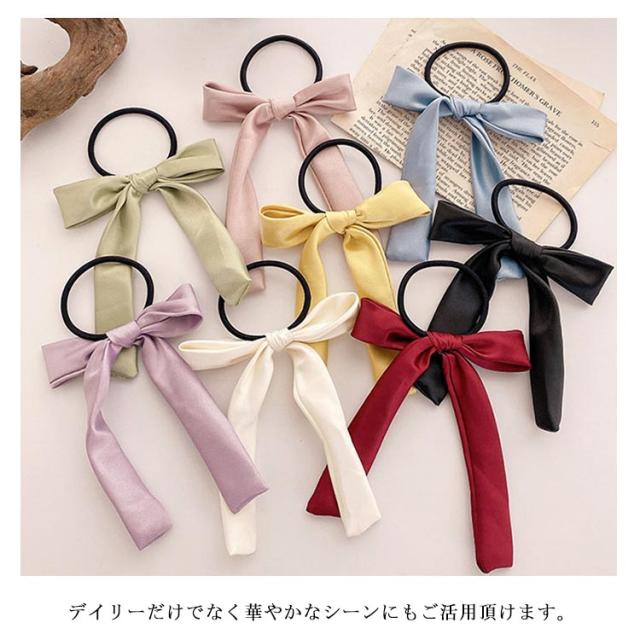 送料無料 ヘアゴム リボン ヘアポニー ヘアアクセサリー リボンヘアゴム サテン ロングリボン シンプル 定番 クラシック オフィス デイリー カジュアル ストリート パーティー