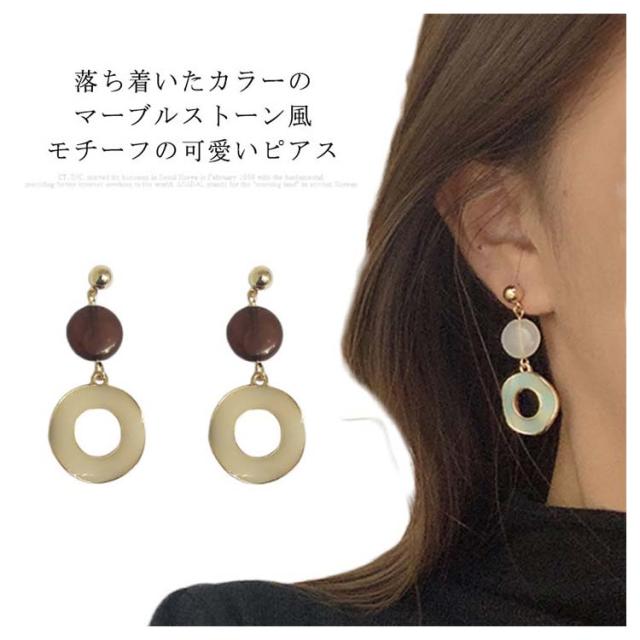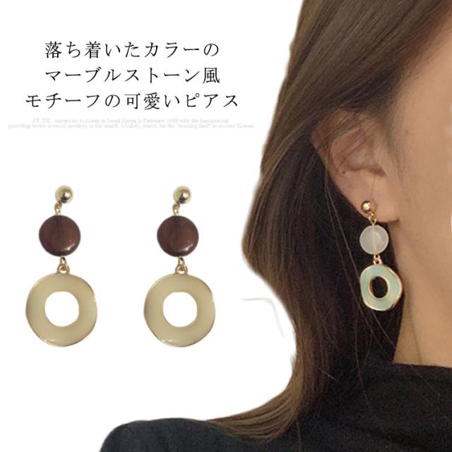 ピアス 可愛い アクセントピアス おしゃれ マーブルストーン サークル レディースファッション レディース アクセサリー 女の子 かわいい 雑貨 ファッション小物