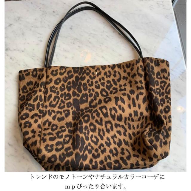 | 柔らかでしっとりした肌触りが人気の秘密。 今季トレンドのレオパード柄トートバッグ。 大きめサイズだから、ipadやA4サイズの雑誌も収納可能。 かばんの中にはねくしやすい鍵やコイン収納できるポケットもあります。 ワンタッチのマグネット開閉になっているので、とっても便利。 マット感のフェイクレザー使いの持ち手は調整できます。 トレンドのモノトーンやナチュラルカラーコーデにMpぴったり合います。 | |