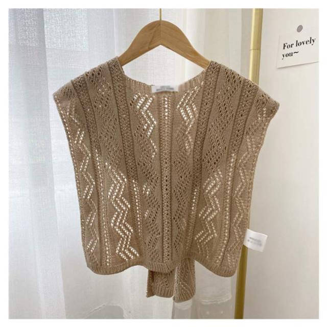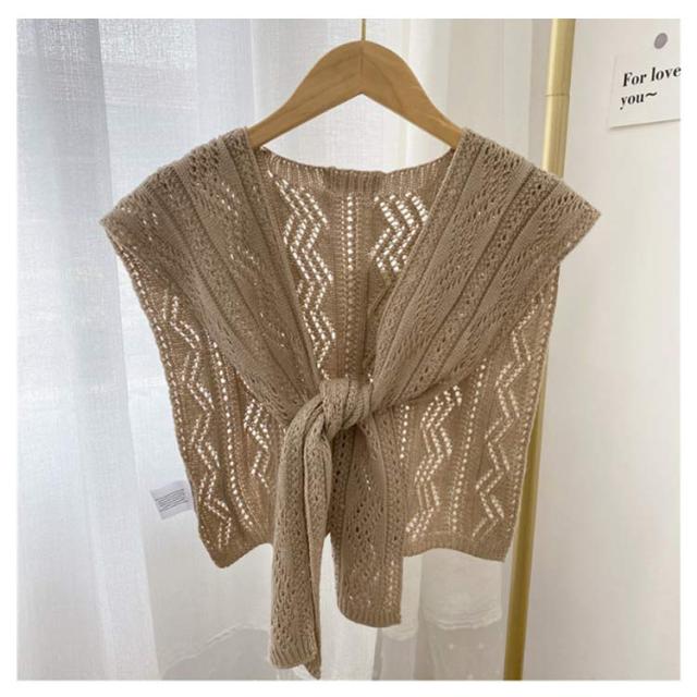 フェイクカーディガン ニット 【送料無料】肩かけニット 肩掛け カーディガン風 ショール ショルダーカーディガン 肩掛け専用ニット 薄手 重ね着風 肩マント カジュアル ナチュラル エレガント 冷房対策 シンプル 夏ニット