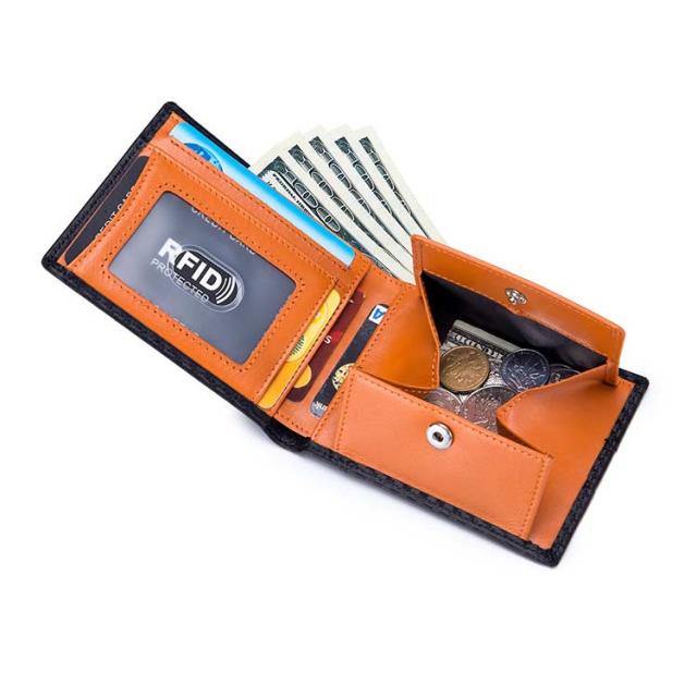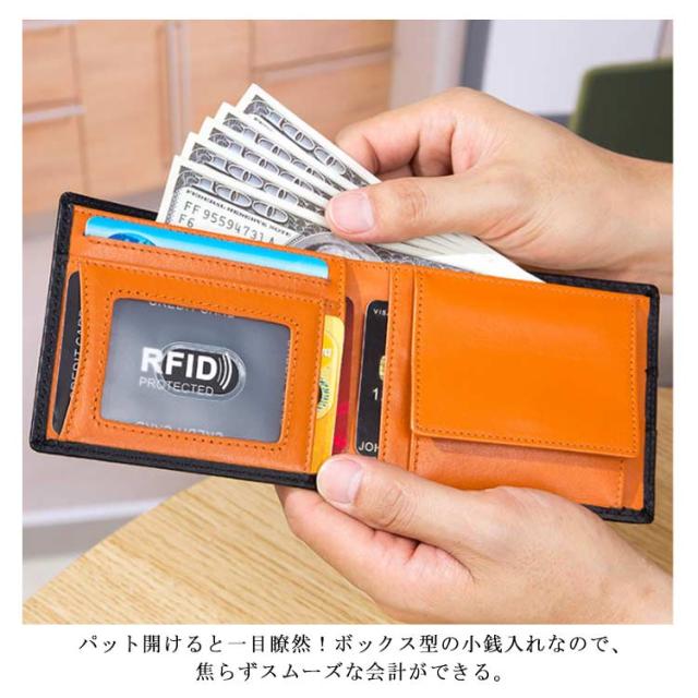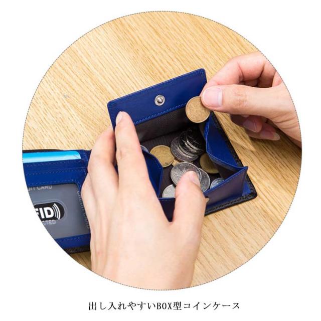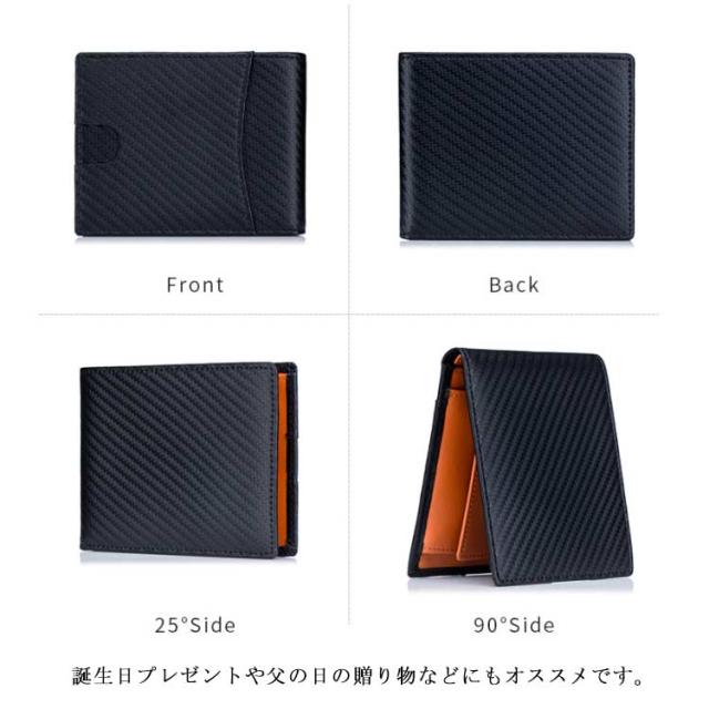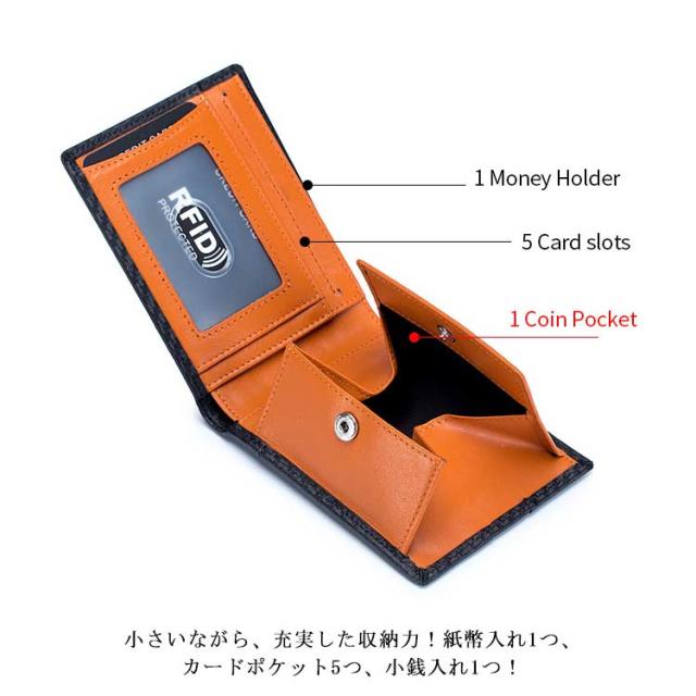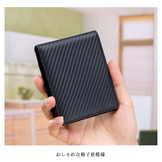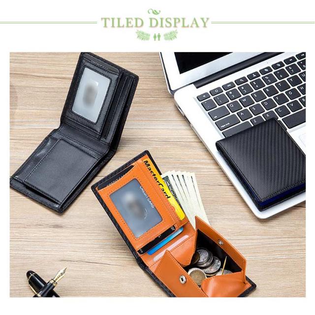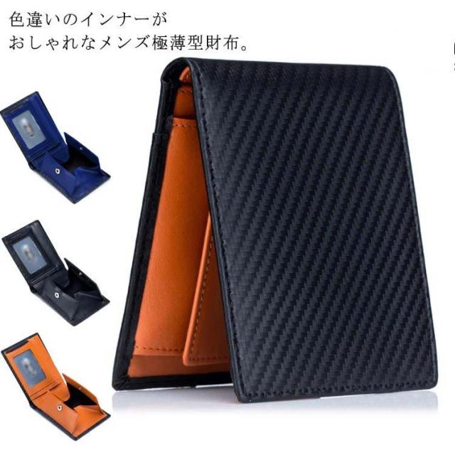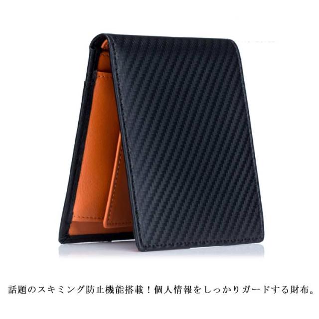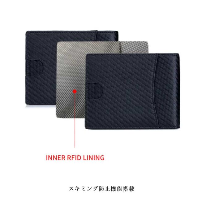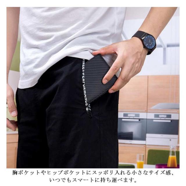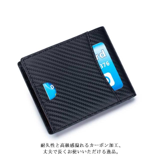 送料無料 極薄 財布 ミニ財布 メンズ 二つ折り財布 スキミング防止 rfid コンパクト カーボン加工 革 ボックス型小銭入れ カードポケット 薄い ウォレット